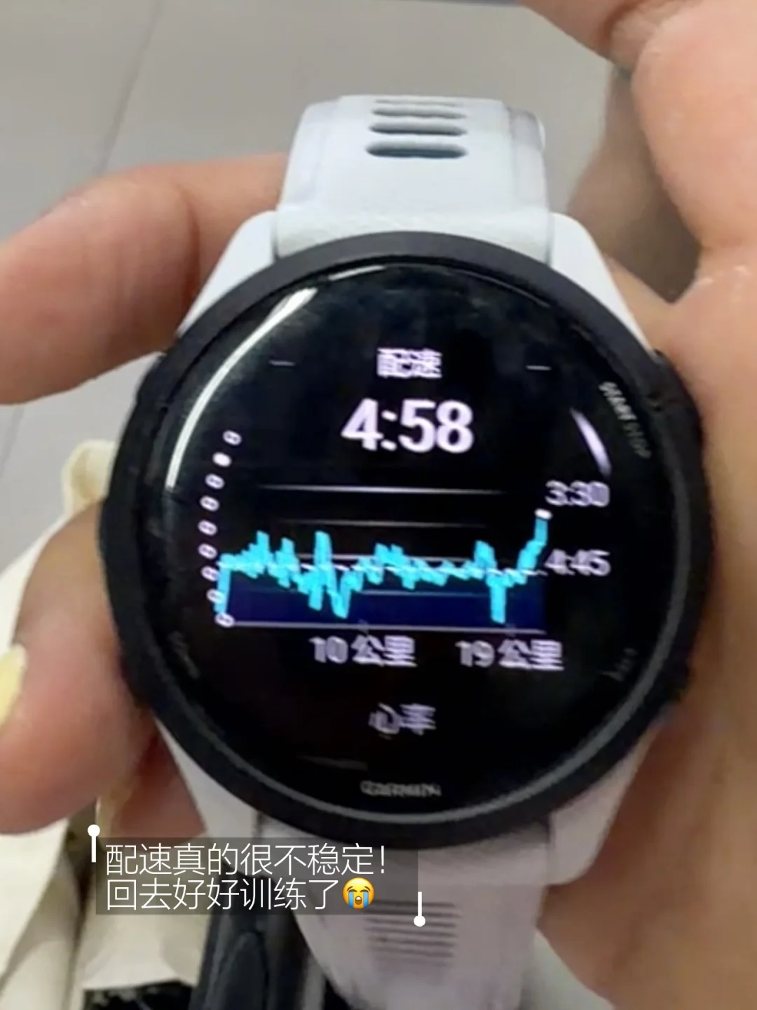 偶尔低头看看左右两只手的数据,因为上周比赛全程节奏很乱,所以这周想更系统的研究自己的配速。