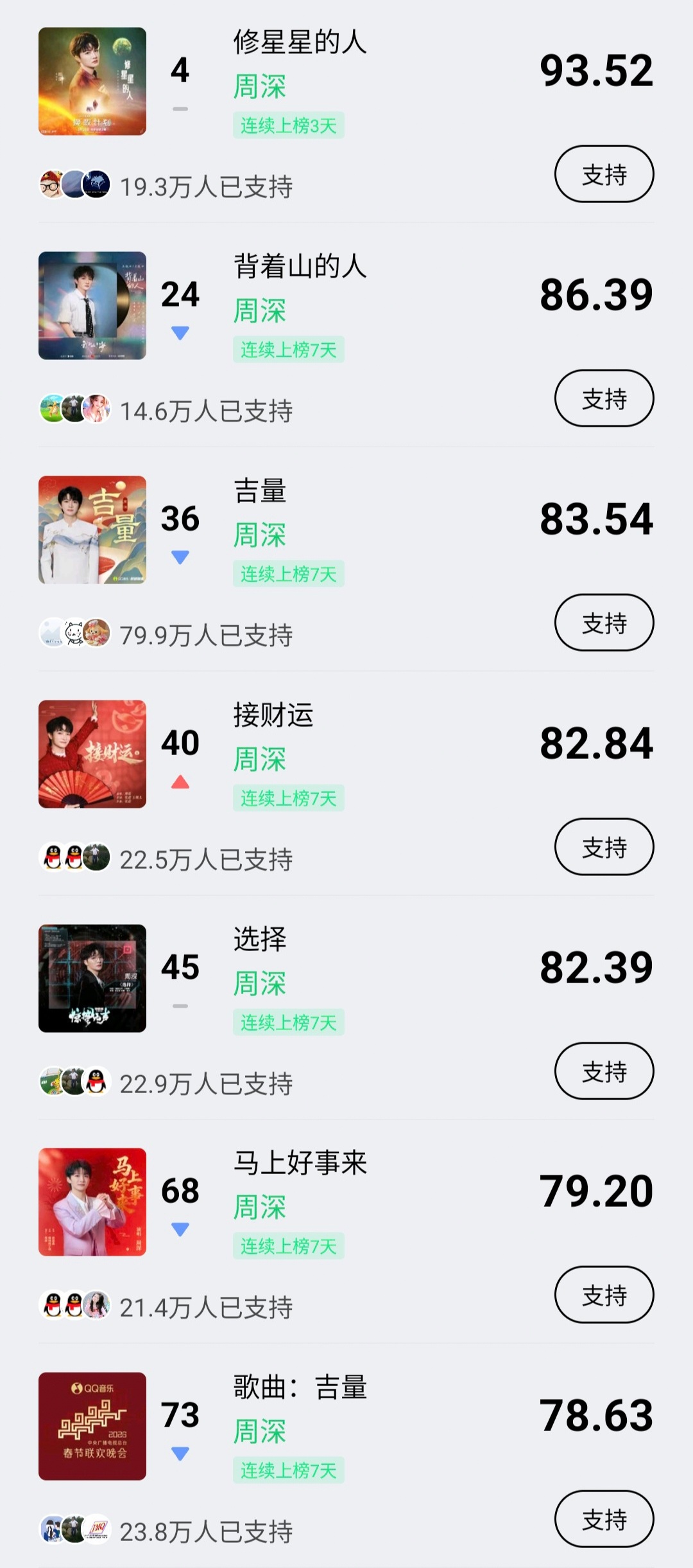 周深📣 3.23 巅峰潮流 📣米米们晚上好,每歌做6个动作路径:Q音-乐馆-排行-潮流巅峰
