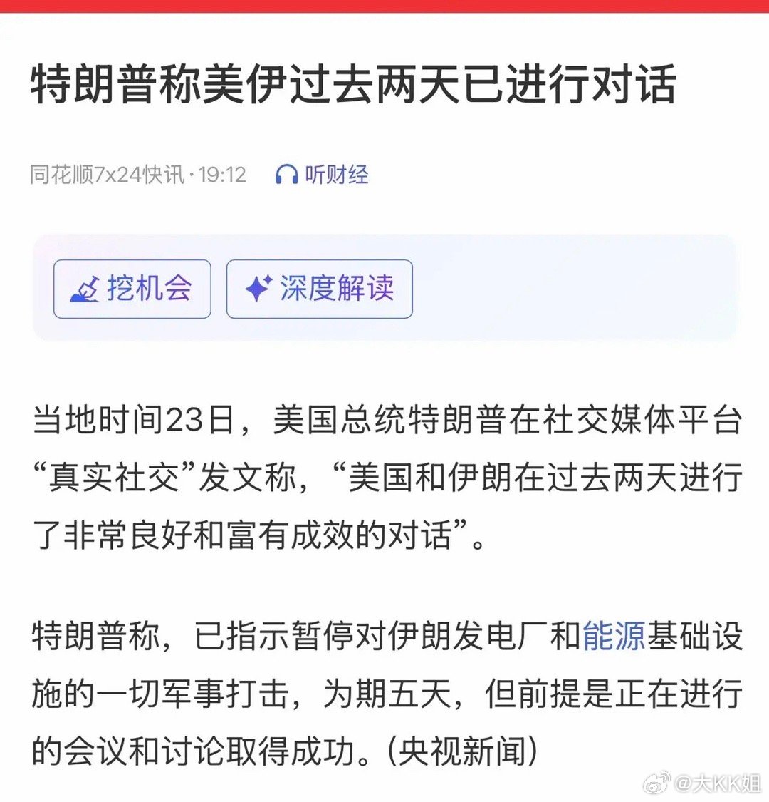 1. 地缘冲突缓和:特朗普表态美伊两日对话“良好且有成效”,并宣布推迟五天对伊军事打击,冲突降级预期显著升温,直接打消市场最大避险顾虑。
