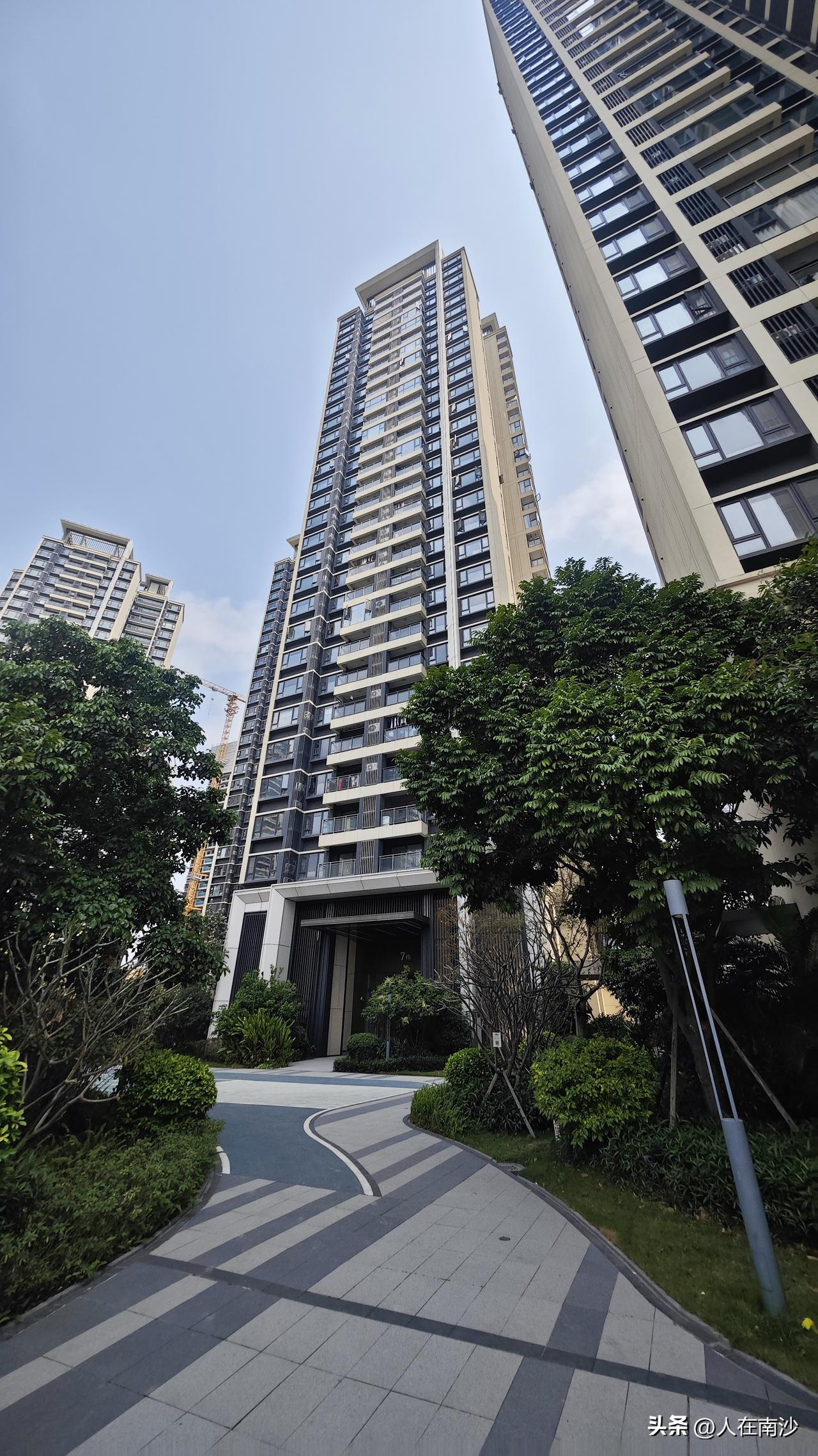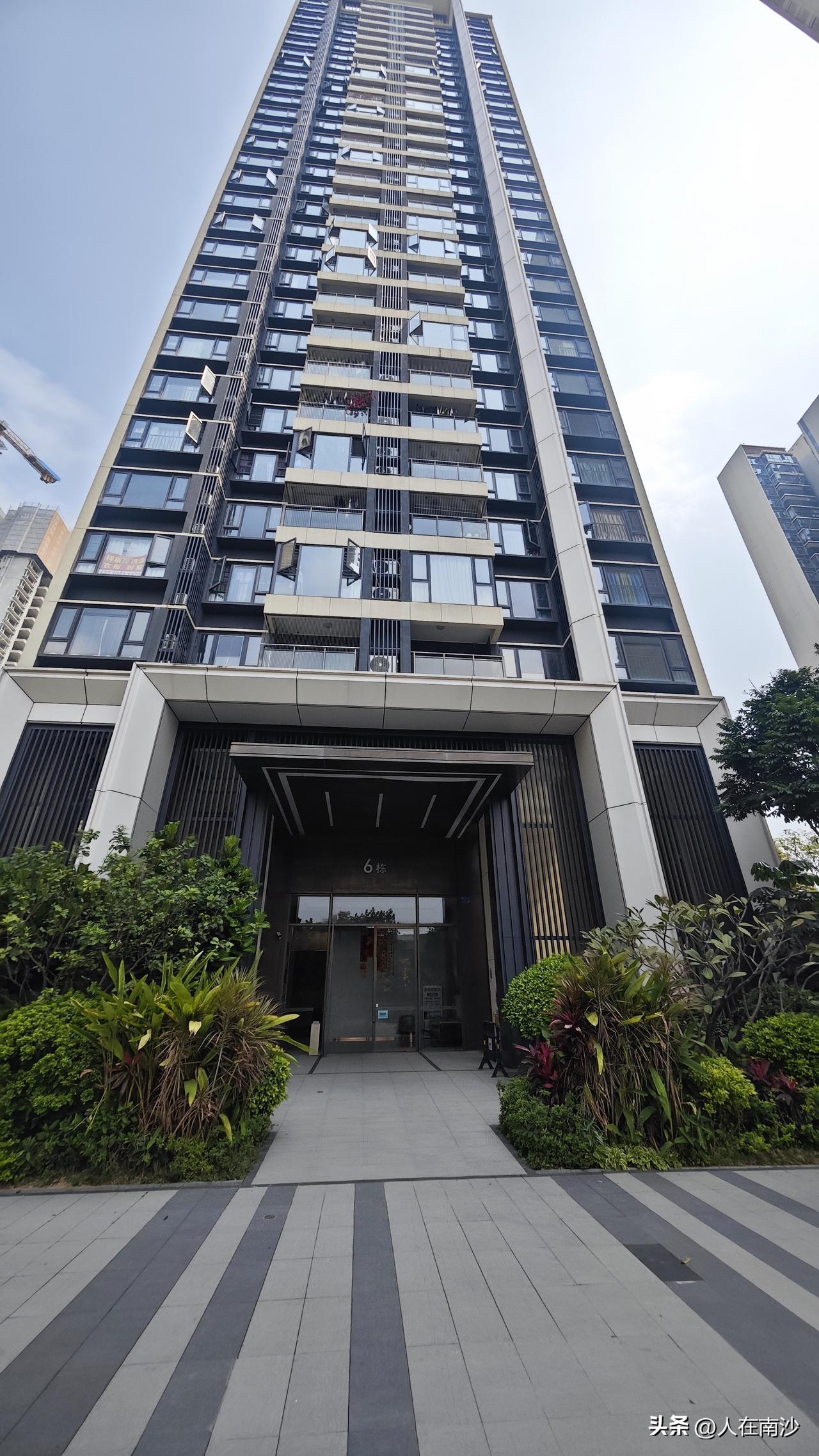 你还别说,虽然凤凰艺术岛曾经暴雷,但是当时设计师冲着高端改善去的,所以楼盘交楼品质还算不错哦。尤其是这个挑高起码7-8米的架空层看着就很有气势,加上这个入户大门的设计,我觉得真的在南沙还是挺独一份的。 围拢式的整体设计也比起现在各种被市政路分割的小地块舒服多了。 当然业主能不能笑到最后,还是要看南侧的地块怎么搞了。