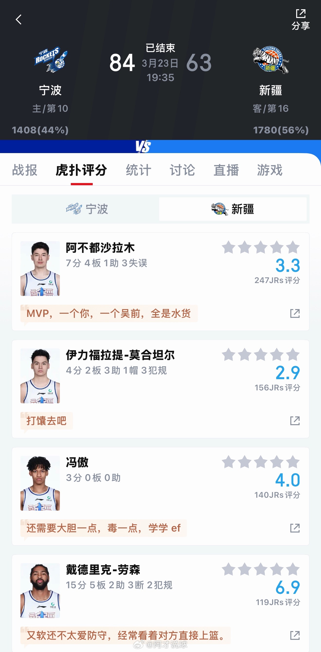 今天有事,没看比赛,咋回事啊,输球有可能,但不至于输这么多吧!?宁波男篮vs新疆