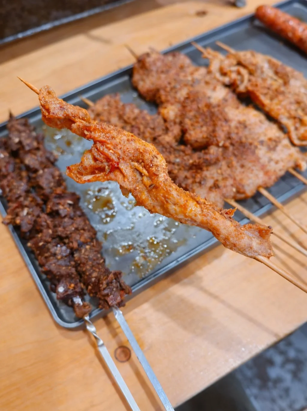 还点了常规烤串,依旧稳定发挥。尤其是鸡皮很脆!队友很喜欢望京小腰,膻味很重。皮蛋豆腐清爽解腻,最近这么热的天气来上一口太爽了