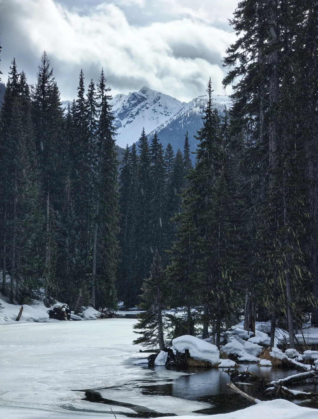 Manning Park最出名的徒步路线大概是秋日Frosty Mountain的金松,而冬日的Lightning Lake格外宁静,旷野无人,万籁俱寂,偏偏是这种感觉,让我格外着迷。