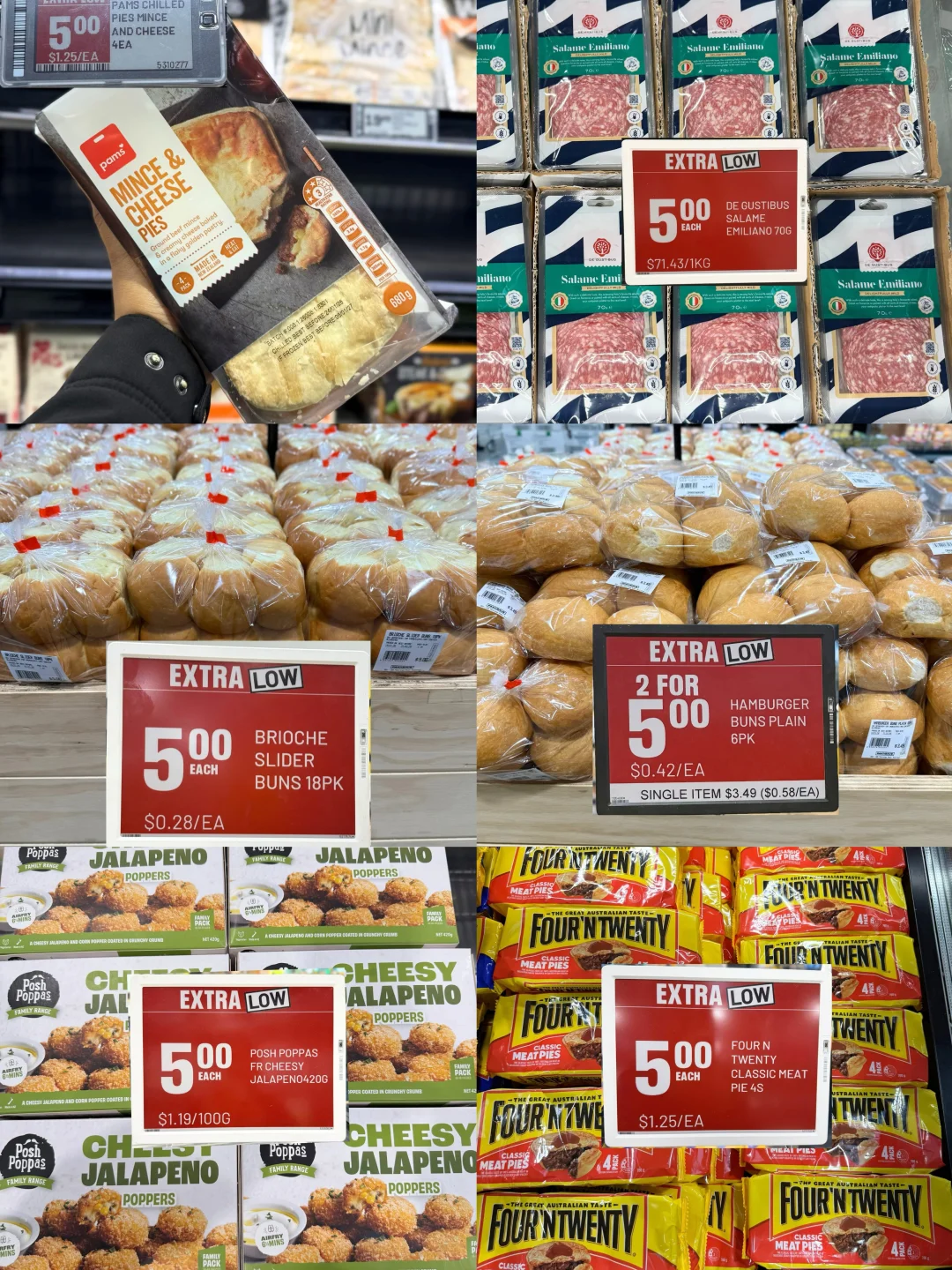 🍖 熟食肉品: 多种Hellers香肠/萨拉米2包$5、培根$5、迷你香肠$5、经典肉派$5