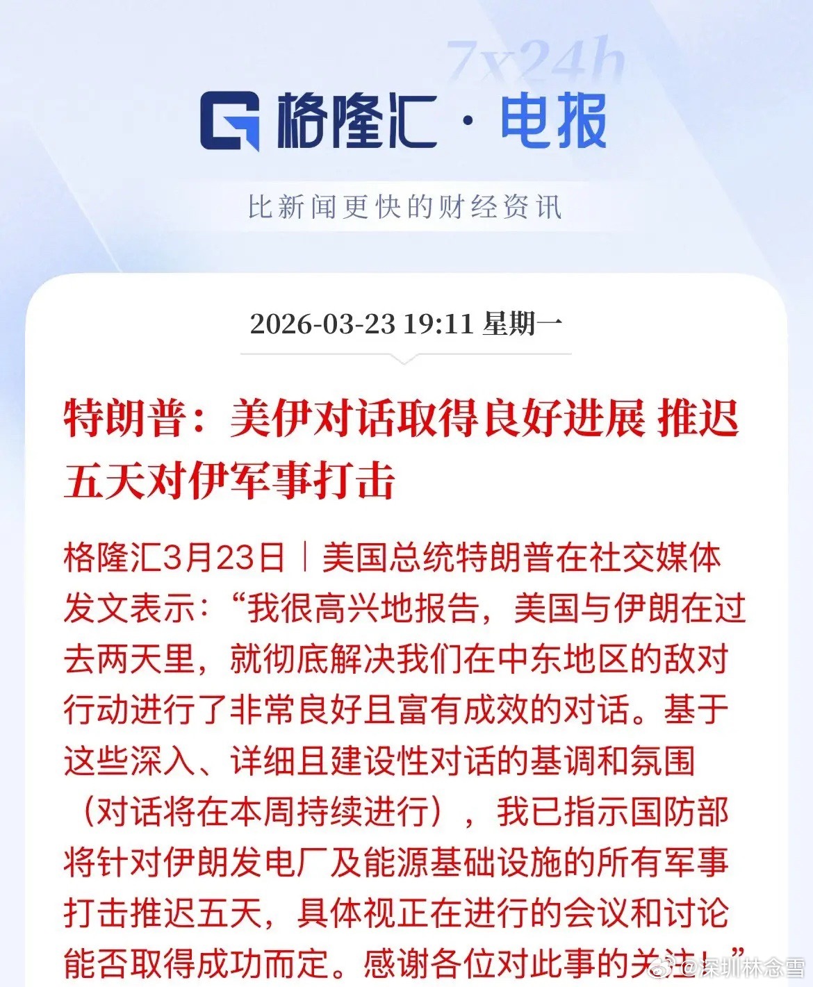 特朗普称与伊朗对话成效显著,推迟5天打击,全球资本狂欢!
