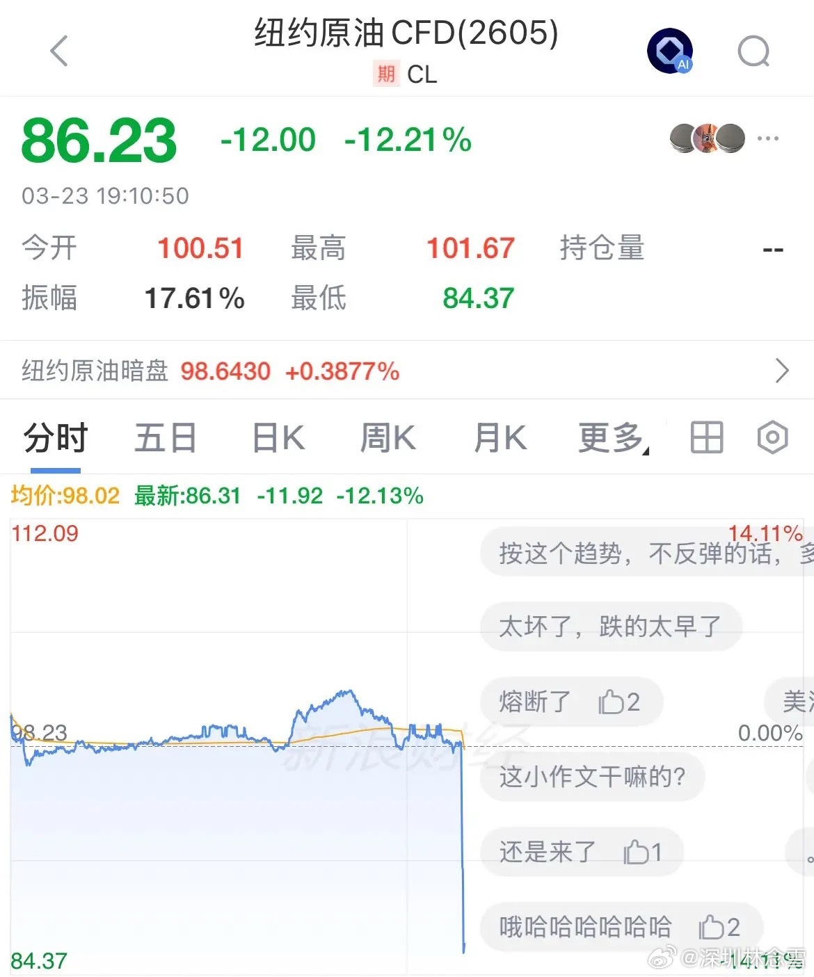 布伦特原油暴跌10%、WTI原油暴跌12%,市场情绪大反转!