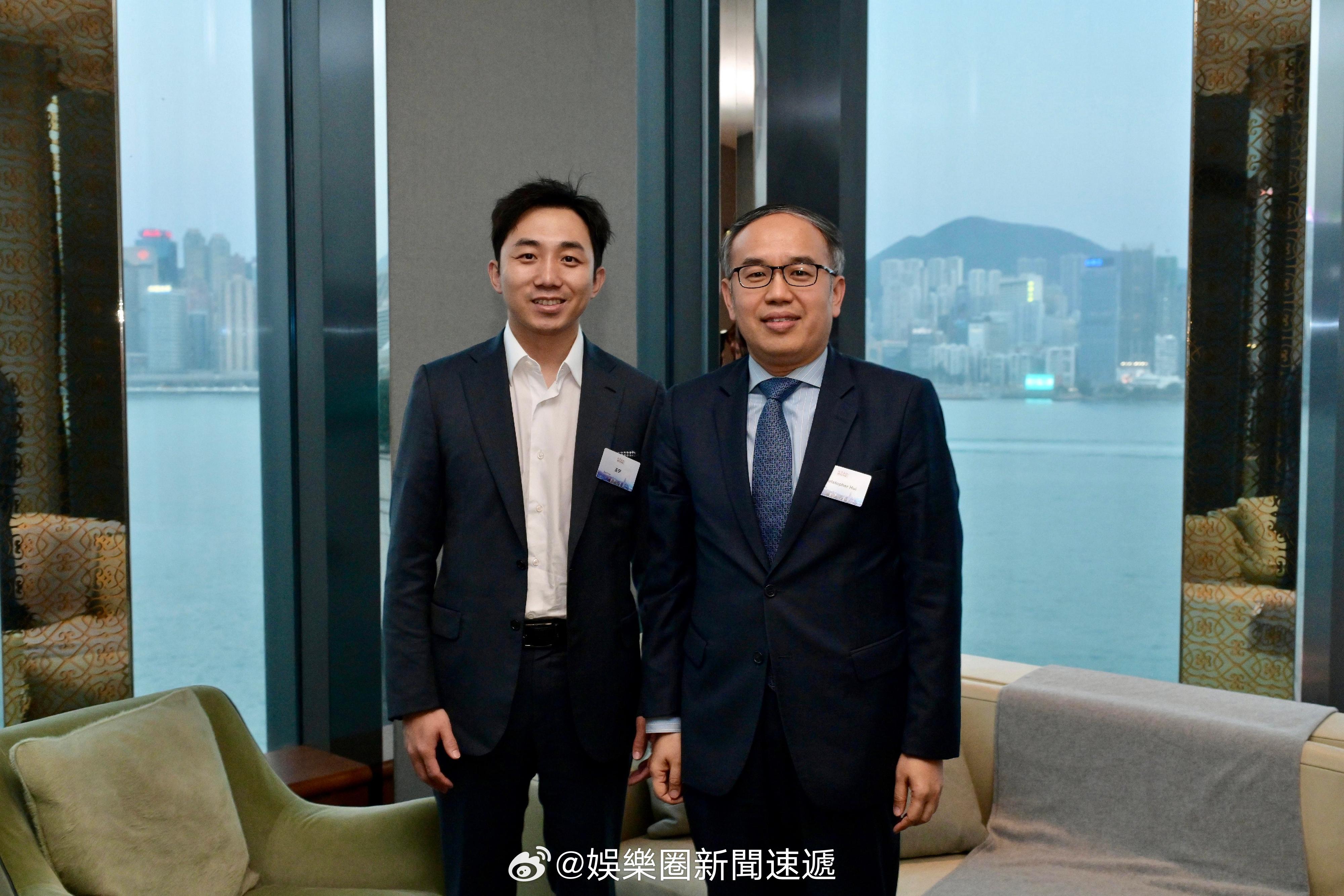 圖2:香港特區政府財經事務及庫務局局長許正宇(右)今晚(三月二十三日)在第四屆「裕澤香江」高峰晚宴期間與泡泡玛特 創辦人、主席及行政總裁王寧(左)會面。股票股市房地产资本市场财经 .. 香港