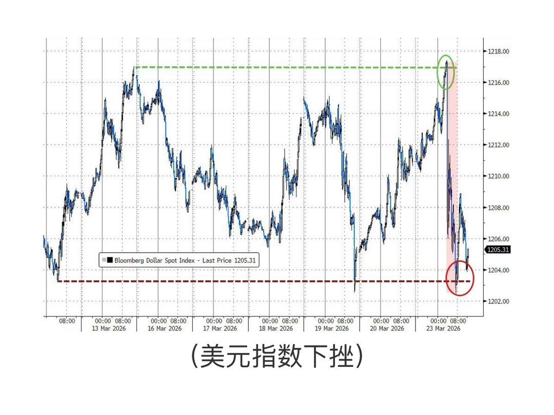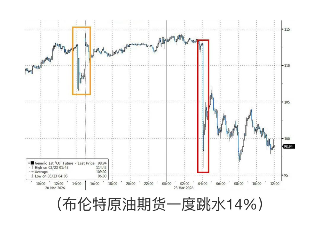 特朗普宣布推迟对伊朗能源基础设施的打击,触发周一全球金融市场剧烈震荡。油价暴跌逾10%,黄金收复日内大部分跌幅。美股指全线收涨逾1%,但伊朗方面随即否认谈判存在,令市场涨势止步于盘中高位。