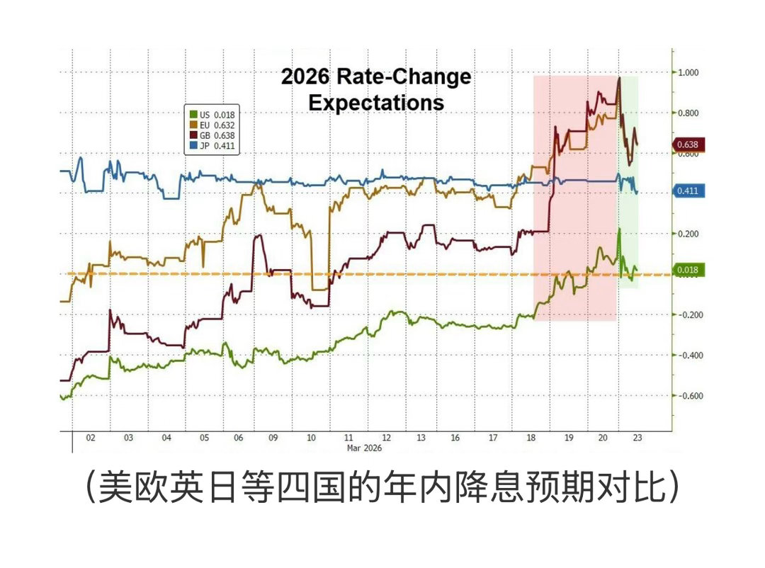 (图7 美欧英日等四国的年内降息预期对比)