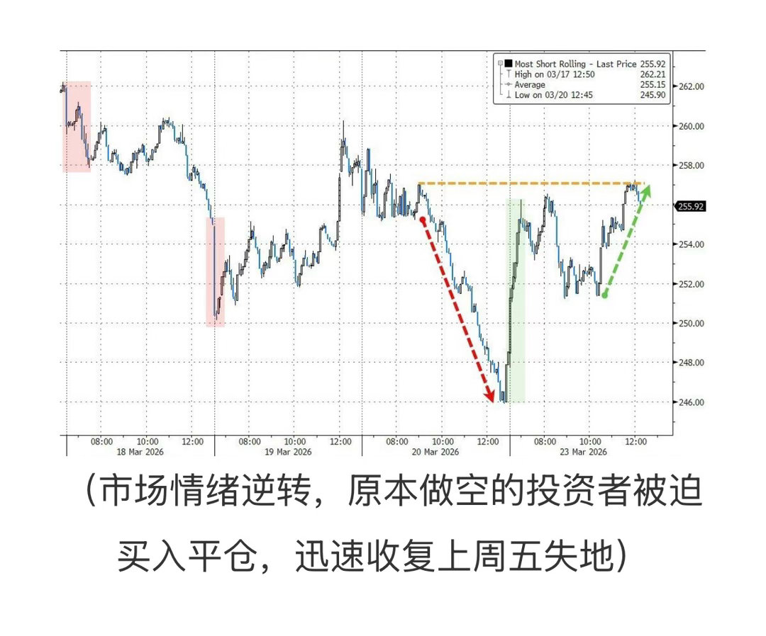 (图6 市场情绪逆转,原本做空的投资者被迫买入平仓,迅速收复上周五失地)
