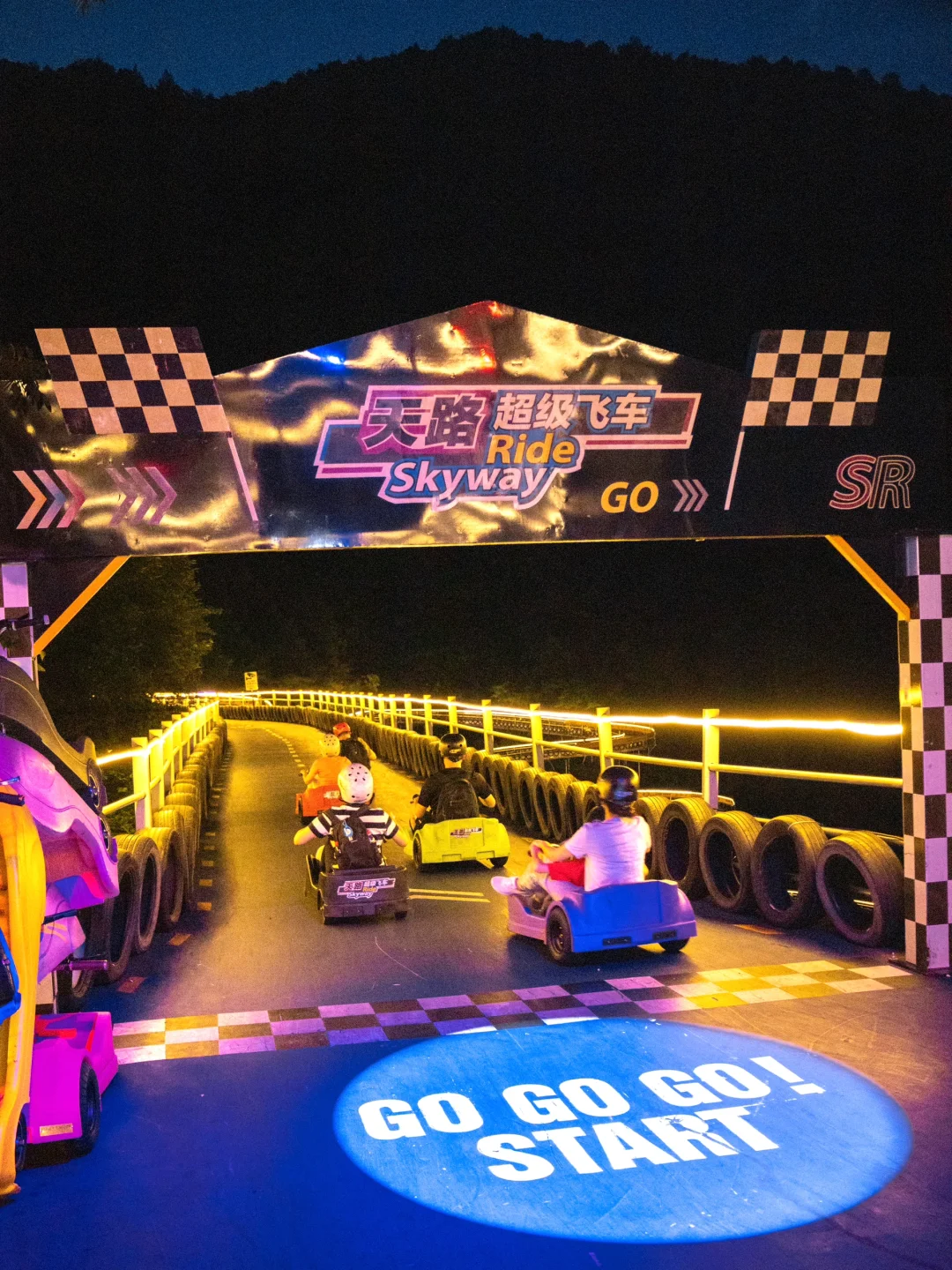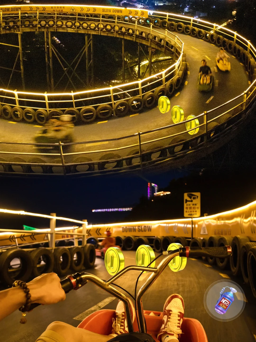 现实版的跑跑卡丁车,全程3公里,主要是夜游不用排队!一路下去感觉自己也像游戏里在吃金币,最后漂移集一罐氮气冲刺!