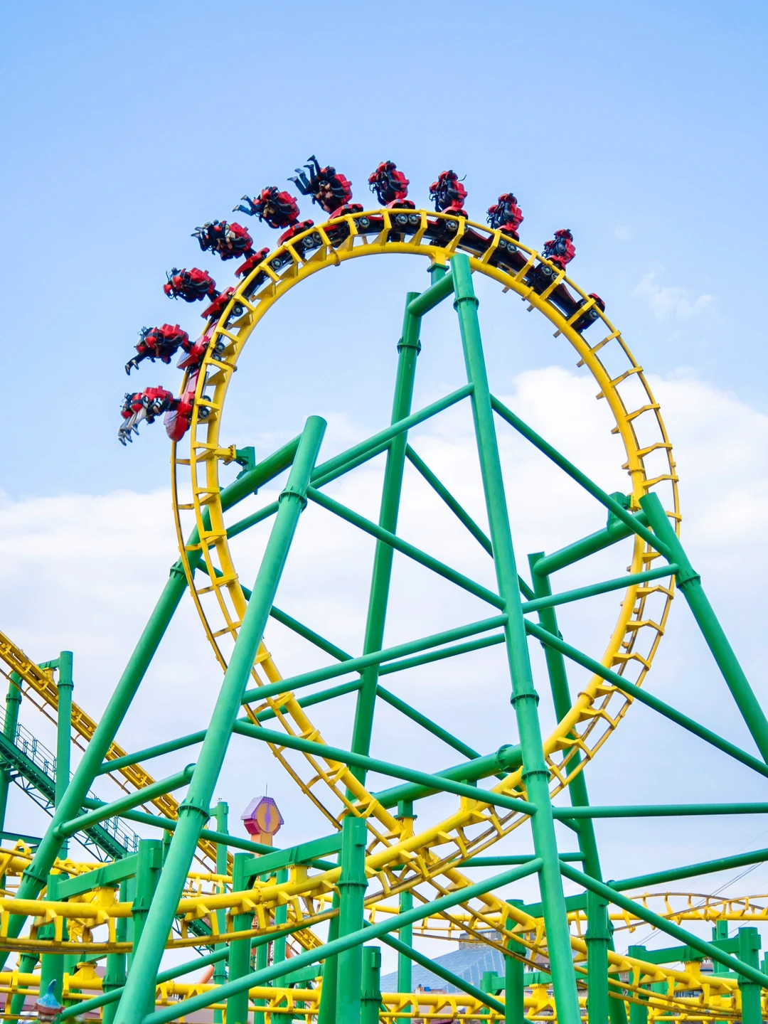 悬挂过山车,雨神之锤,风神之手,穿越云霄,激流勇进,丛林秋千,高空飞翔等刺激项目。风神之手和丛林秋千有强烈晕眩感😵