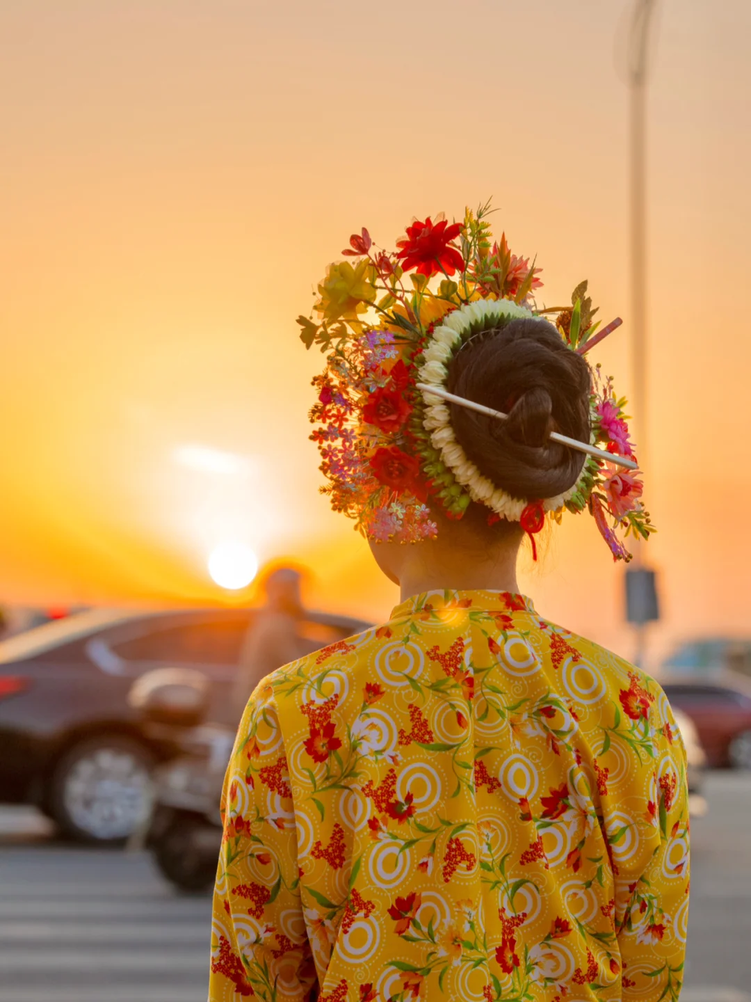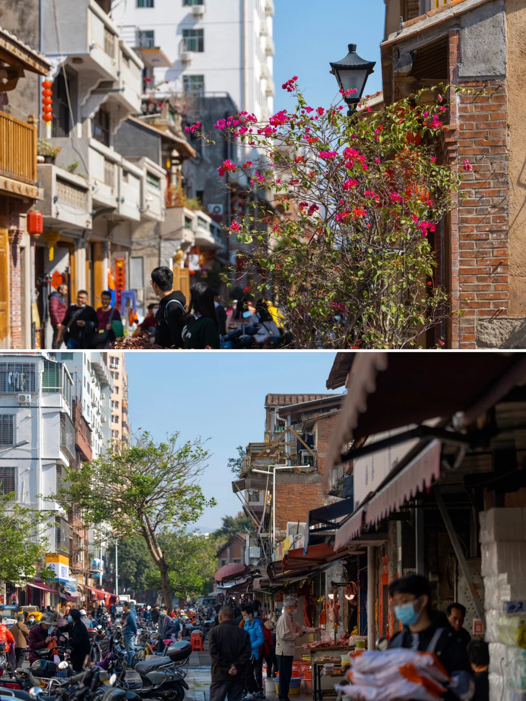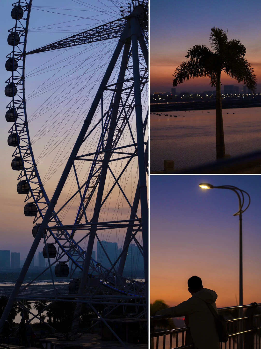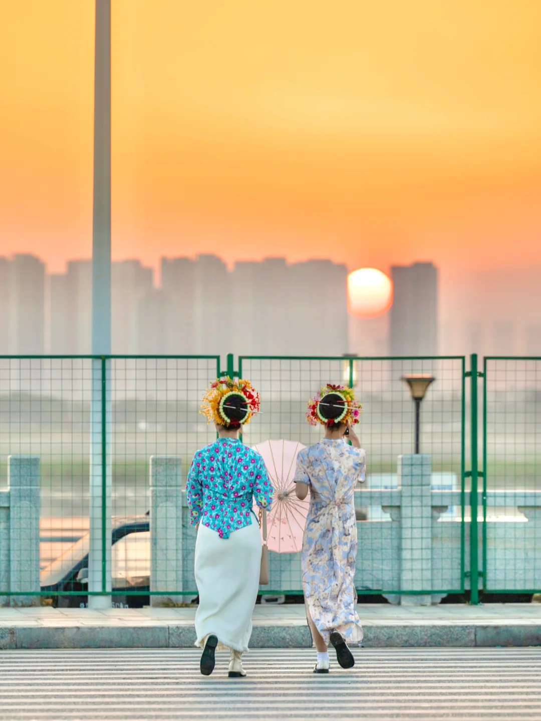 在下午日落前赶到蟳埔村,距离西街10公里,打车20分钟,体验赵丽颖同款的头上围花,沿着丰海路看岸边的渔船和日落,走/骑行2公里就到泰禾广场,在天桥或者摩天轮上享受浪漫的蓝调时刻。