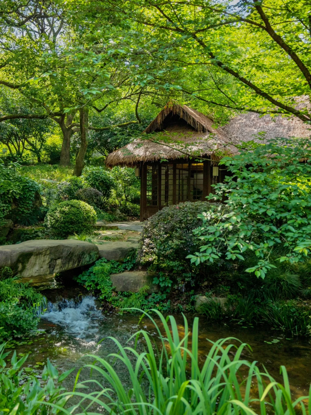免费,可现场预约。有杭州最出片的茅草屋,馆外馆内都有溪流穿过,很适合拍夏日清凉感的照片。