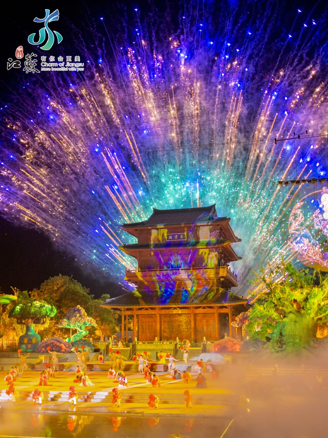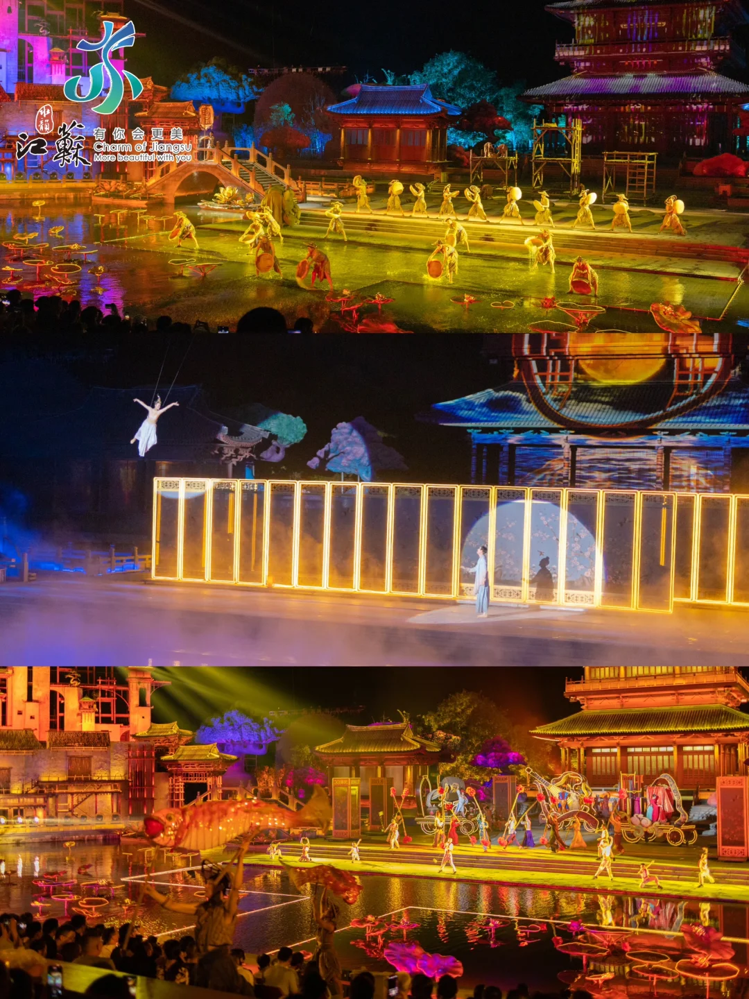 围绕“孝贤文化”和“爱情传说”两大主题,汉唐风格的建筑到晚上亮灯后,一秒穿越大唐盛世。晚上有《天仙缘》实景演出不要错过,最后还会放烟花。