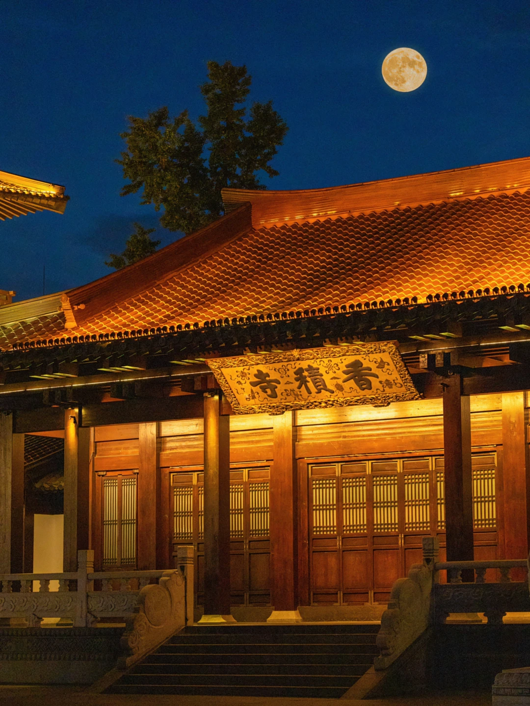 唐风寺院与周围的摩登大楼形成强烈的视觉冲击,站在广场前,有种穿越古今的感觉。晚上亮灯后更震撼。