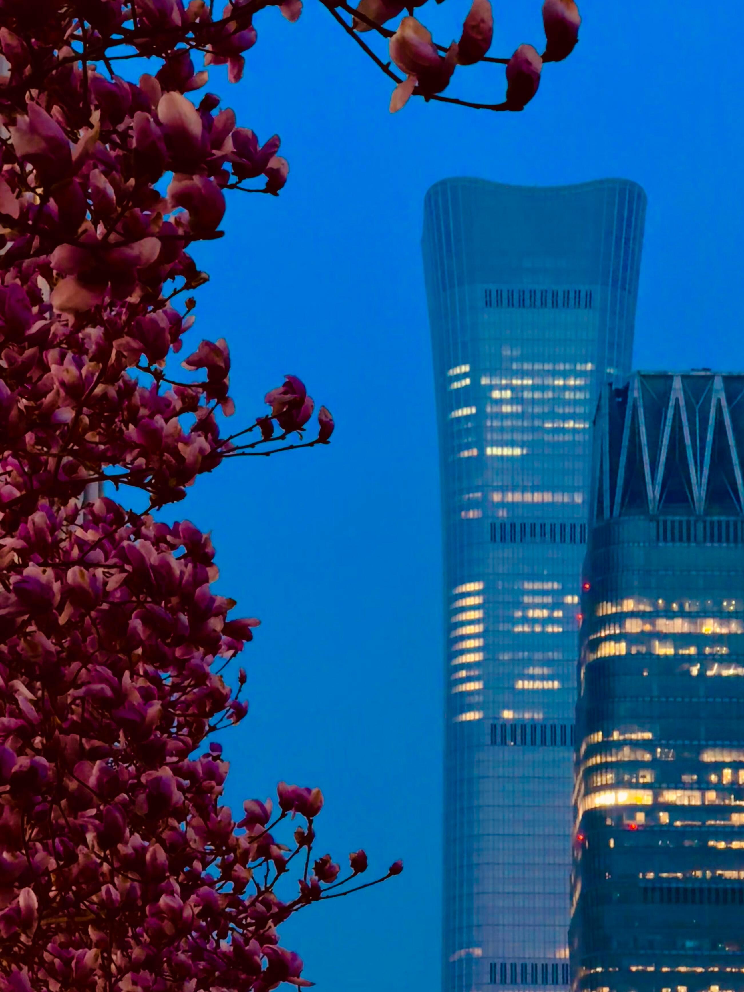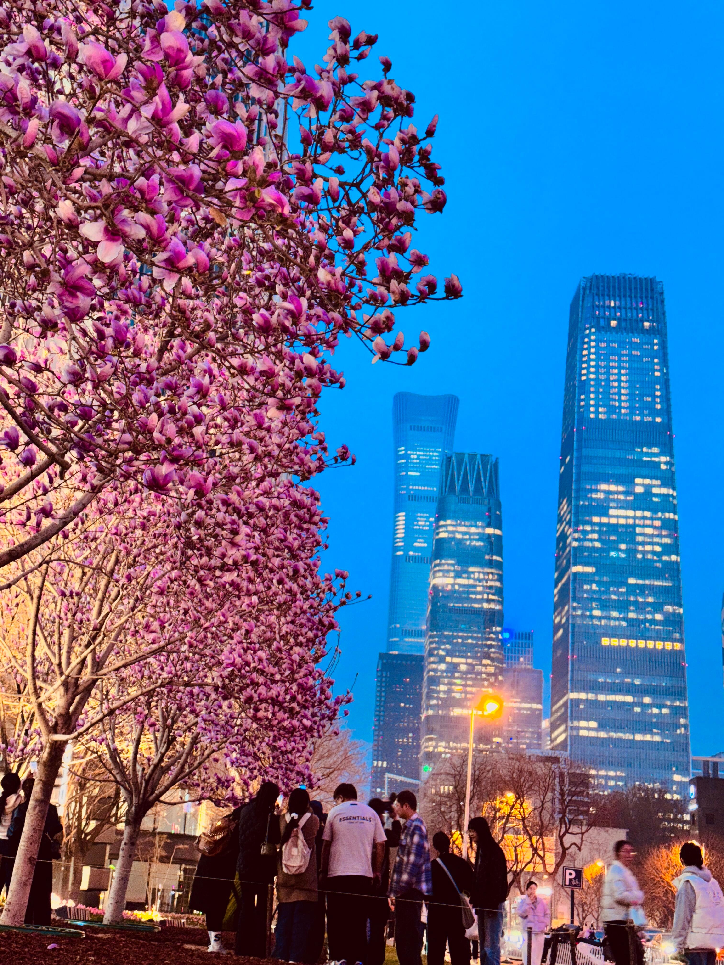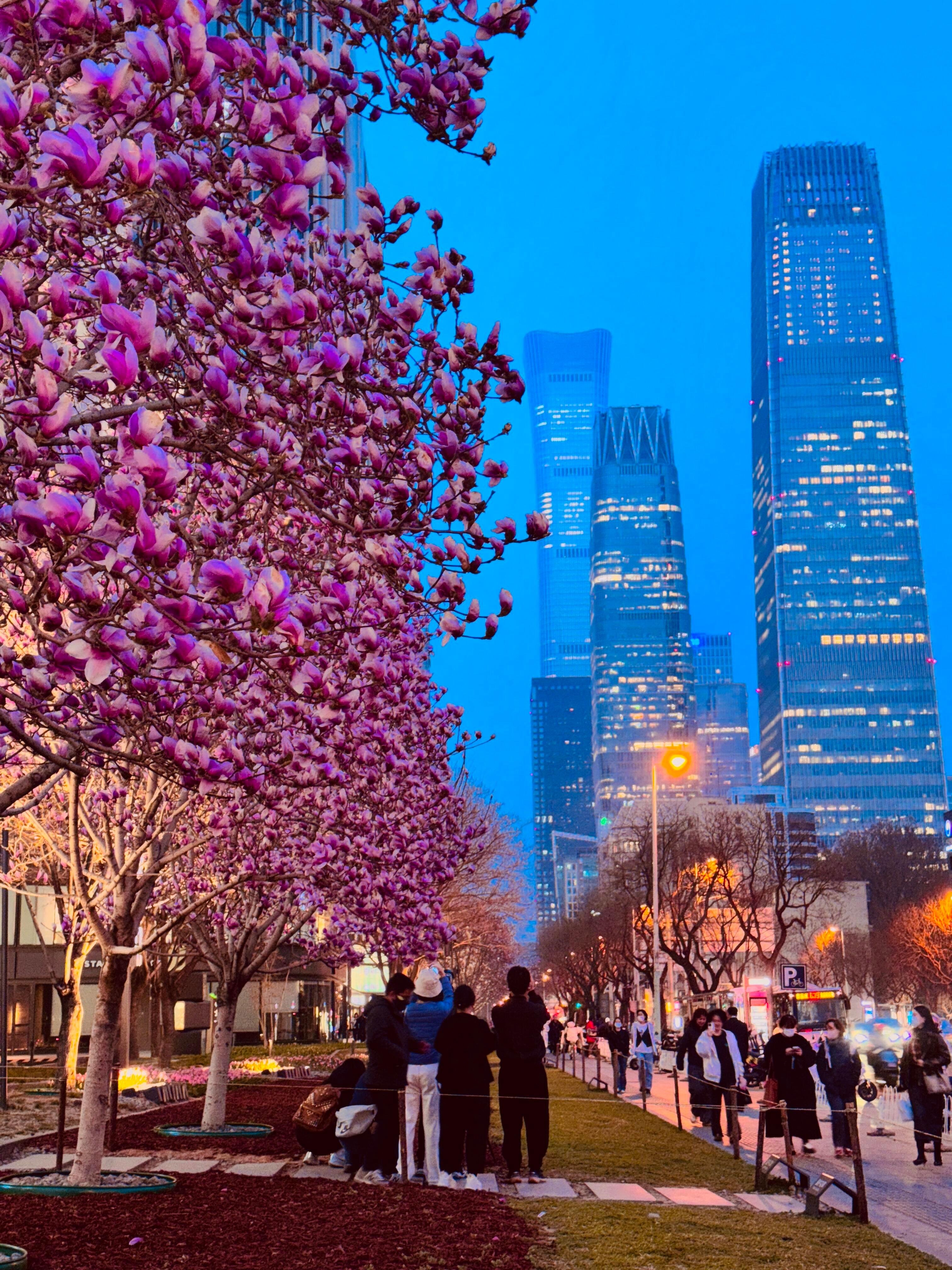 当蓝调晚风遇上盛放玉兰国贸CBD玉兰花Blue Hour Bloom✨