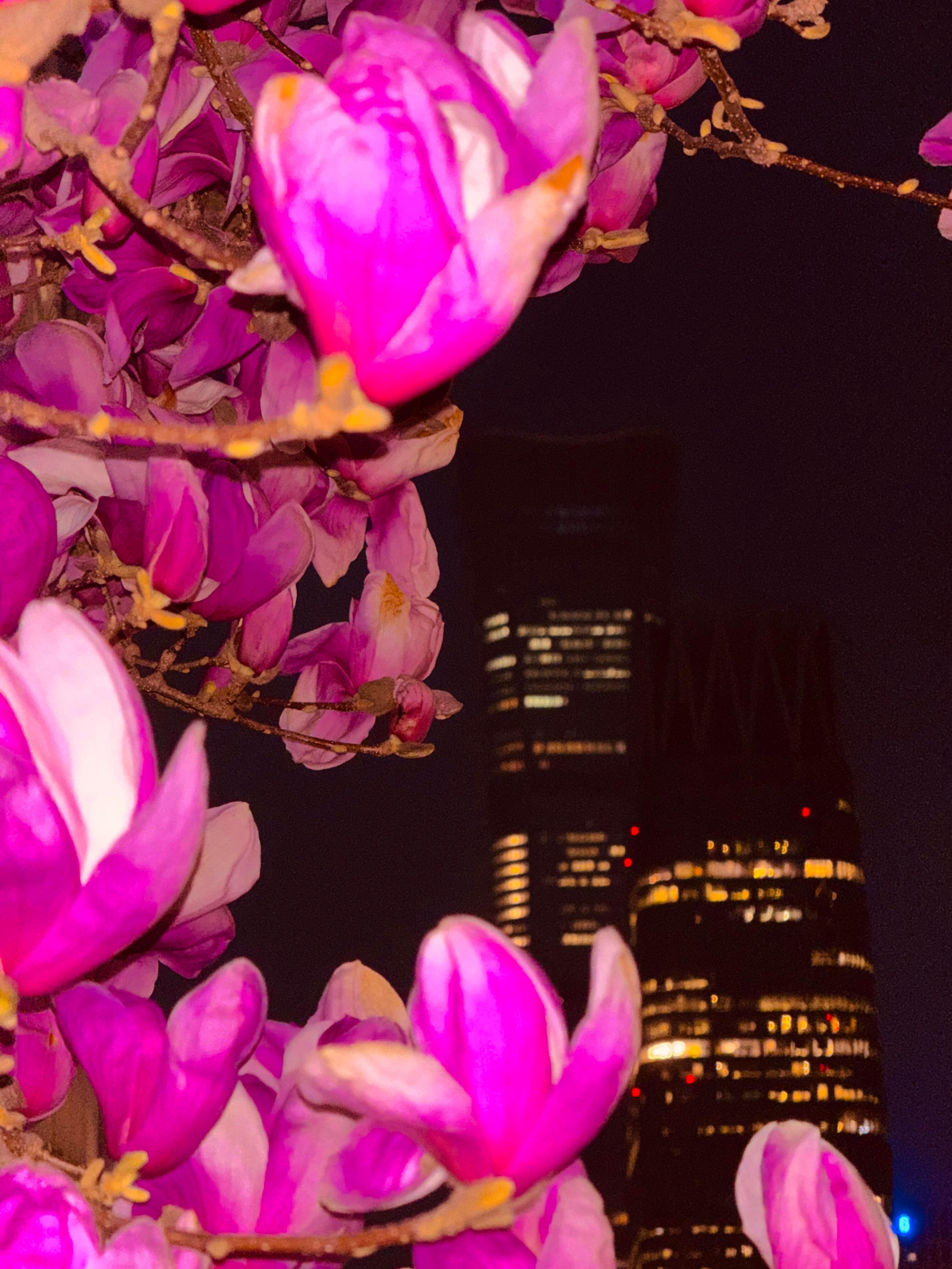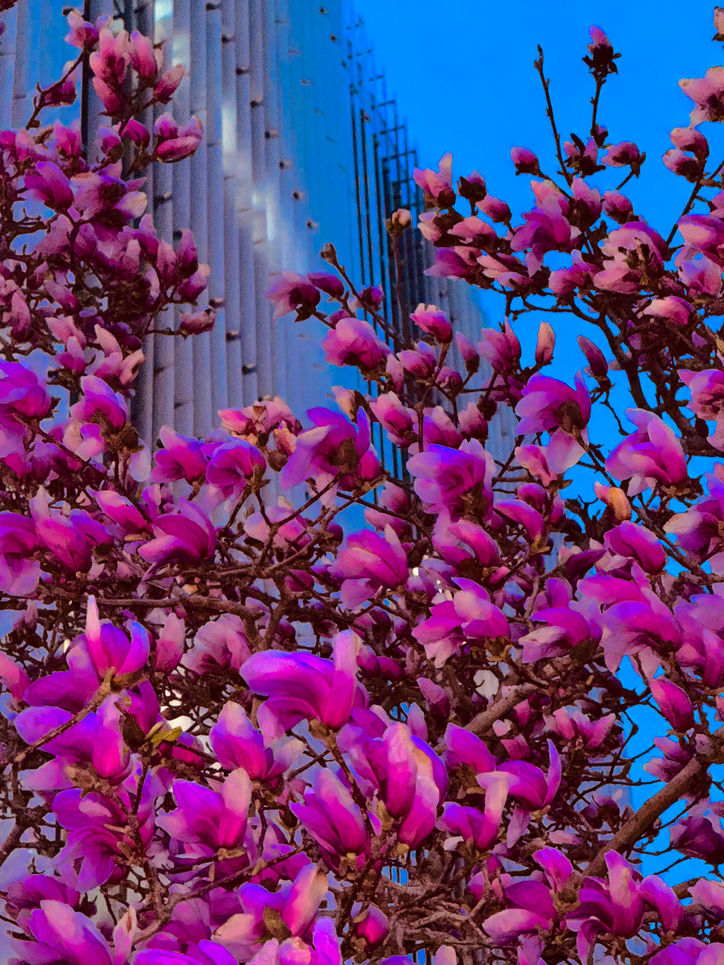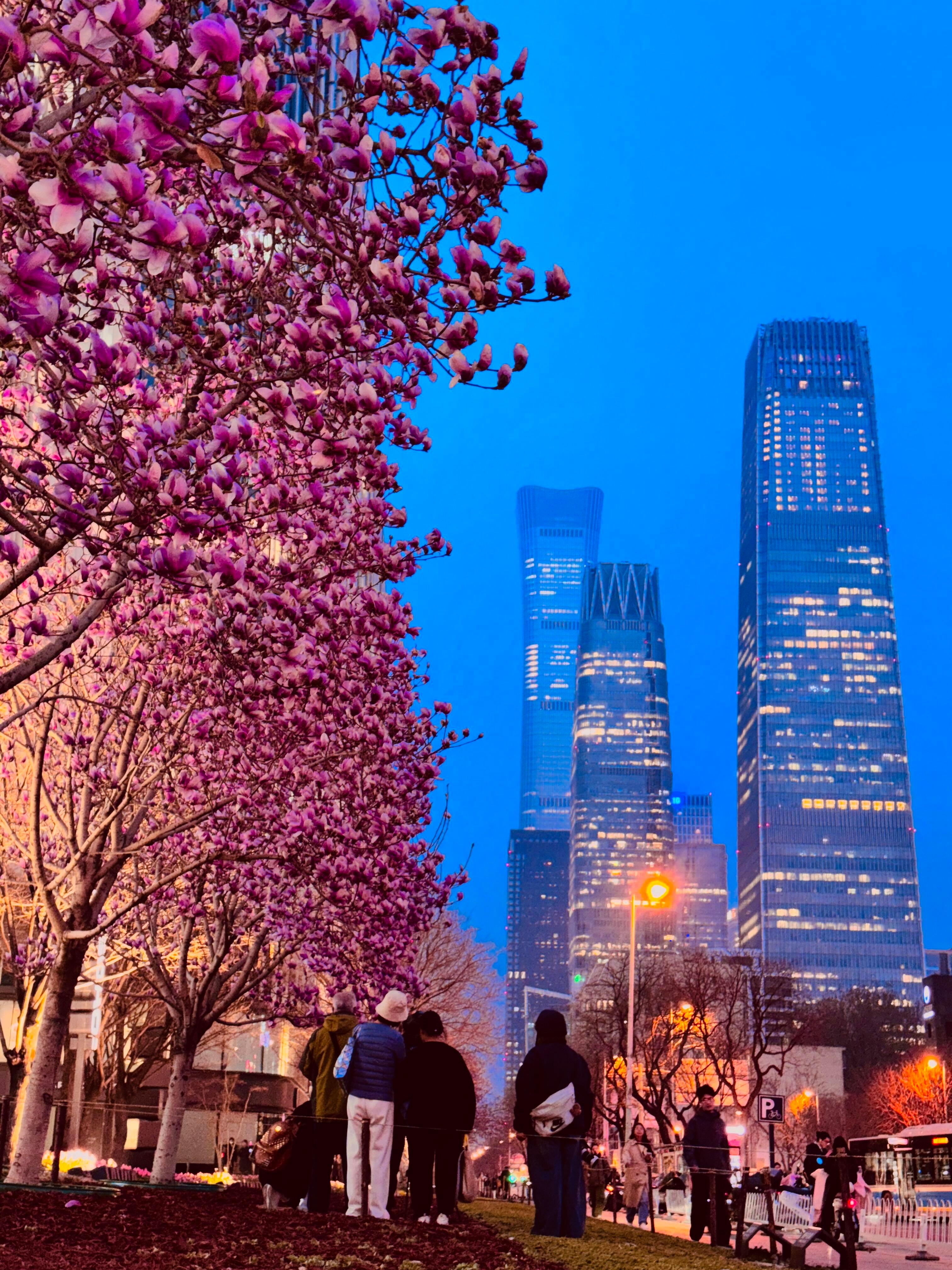 当蓝调晚风遇上盛放玉兰国贸CBD玉兰花Blue Hour Bloom✨
