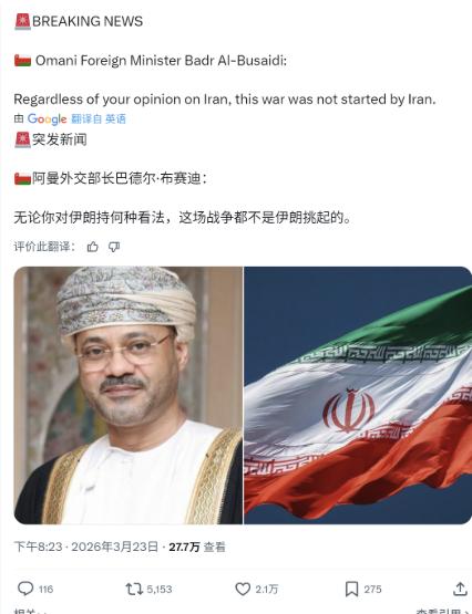 霍尔木兹海峡另一侧的阿曼,阿曼外长硬核发声:“不管你怎么看伊朗也好,这场战争不是它挑起的。” 阿曼作为关键的沿岸国,直接点明战争责任归属“无论你对伊朗持何种看法,这场战争都不是伊朗发起的。”引发广泛共鸣。 很多人可能不知道,阿曼在中东一直是个“特殊存在”,它不跟谁结盟,也不随便站队,长期扮演着美伊之间“调解人”的角色,一边跟美国保持着传统合作,一边也和伊朗维持着边境、经贸上的良性往来。 这种中立不是懦弱,是聪明——阿曼心里清楚,中东乱不得,霍尔木兹海峡更乱不得,一旦局势失控,最先遭殃的就是沿岸国家,而它作为海峡的重要掌控者之一,比谁都想守住这份平静。 这次阿曼外长敢这么硬核发声,说白了就是看不惯西方的双重标准,也看不惯有人故意把水搅浑,把战争的黑锅扣在伊朗头上。 这些年,西方一直盯着伊朗,动辄就指责伊朗“挑事”“搞扩张”,可实际上呢?是以色列先主动袭击伊朗,公然违反国际法,侵犯伊朗的主权和领土,甚至还瞄准了伊朗的核设施,这种行为要是换做其他国家,西方早就跳出来谴责了,可到了伊朗这里,就变成了“伊朗挑衅在先”,这种双标玩得也太明显了。 阿曼外长心里跟明镜似的,美国现在在中东早就没了以前的威风,连自己的盟友都指挥不动,说白了就是丧失了对中东外交政策的控制权。之前还有消息说,沙特、阿联酋这些海湾国家在向美国施压,要求削弱伊朗的军事能力,可阿曼偏不跟风,反而站出来为伊朗说话,不是它不怕美国,是它知道,跟着美国瞎起哄,最后只会把自己拖进战争的泥潭里。 霍尔木兹海峡承担着全球近四成的石油运输,一旦战争扩大,石油通道被切断,不仅阿曼的经济会遭受重创,全球能源市场都会陷入混乱,这种代价,没有哪个国家能承受得起。 更关键的是,阿曼之前一直努力斡旋,想促成伊朗和相关各方坐下来谈判,好不容易有了一点进展,却被以色列的袭击彻底打断,所有的努力都付之东流。换谁都会有脾气,这也是阿曼外长敢硬核发声的底气之一——它不是在帮伊朗说话,是在为地区和平发声,是在指责那些破坏和平、故意挑事的人。 可能有人会说,阿曼是不是想讨好伊朗?其实真不是。阿曼和伊朗之间,没有什么所谓的“盟友情义”,更多的是利益绑定和相互制衡。它们共享霍尔木兹海峡的权益,边境地区还有不少经贸往来,一旦伊朗被彻底削弱,或者陷入长期战争,阿曼的边境安全、能源利益都会受到直接影响。说白了,阿曼维护伊朗,本质上是在维护自己的利益,是在守住自己的“饭碗”。 反观那些跟着西方指责伊朗的国家,要么是被美国裹挟,要么是出于自身的私心,根本没考虑过地区和平的大局。就像沙特、阿联酋,它们跟伊朗有矛盾,就想借着美国的手削弱伊朗,可它们忘了,中东的局势从来都是“一荣俱荣,一损俱损”,伊朗要是乱了,它们也别想独善其身。 而美国呢?它根本不在乎中东的和平,只在乎自己能不能掌控中东的石油,能不能遏制伊朗的发展,只要能达到目的,哪怕把中东搅得天翻地覆,它也毫不在意。 阿曼外长的发声,之所以能引发广泛共鸣,就是因为它说出了很多国家想说却不敢说的话。很多中东国家心里都清楚,伊朗不是这场战争的挑起者,可迫于美国的压力,只能沉默不语,而阿曼敢站出来,打破这种沉默,就是因为它的中立立场,让它不用看任何人的脸色,也不用被任何势力裹挟。 其实,阿曼的想法很简单:不管你对伊朗有多大的意见,不管你跟伊朗有多少矛盾,都不能不分青红皂白地把战争的责任推给它。战争的代价太大了,尤其是在霍尔木兹海峡这样的关键地带,一旦开打,受苦的还是普通老百姓,受损的还是各国的利益。阿曼外长的这句话,不仅是在为伊朗正名,更是在提醒所有人:别被舆论带偏,别被利益绑架,看清谁才是真正挑事的人,守住地区和平,才是最根本的利益所在。 还有一点很关键,阿曼外长敢这么硬气,也离不开中国的支持。之前王毅外长和阿曼外长通电话,明确表示以色列的行为违反国际法,破坏地区和平,支持阿曼等国家呼吁和平、通过谈判解决争端的立场。有了中国这样主持正义的大国支持,阿曼自然更有底气,敢于公开对抗西方的双标和霸权。 说白了,阿曼不是在“多管闲事”,而是在做最正确的事。它知道,只有明确战争的责任归属,才能遏制局势进一步恶化,才能有机会重新回到谈判桌前,才能守住霍尔木兹海峡的安全,守住自己的利益。西方那些想把黑锅扣在伊朗头上的人,说白了就是心虚,就是想通过舆论绑架,掩盖自己的真实目的。 阿曼的发声,就像一记耳光,打在了那些双标分子的脸上,也打在了那些故意挑事的人脸上。它用自己的立场告诉全世界:中东的和平,不能由某一个国家说了算,也不能被某一种势力绑架;伊朗不该被无端指责,真正该被谴责的,是那些主动挑起战争、破坏和平的人。