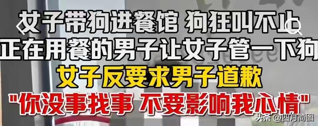请看双方的对话:女子说,“你给我道歉也行,我是狗主人。”男子说,“你家狗在饭馆狂吠不止,我只是善意的提醒一下,为什么要道歉?”女子说,“第一,这家店没有在门口放指示牌,不让带狗进来。第二,你这个人没事找事,有可能上岁数了,想没事找事,找我头上来了,最后,你来我们西安干嘛来了?这里是西安,我是老西安人……这边养狗的多了去了。”男子说,“养狗没有任何问题,随便养,但是不能打扰到别人。” 女子直接双臂抱胸,高傲的说,“你不要影响到别人的心情,你不要影响到别人的心情。” 当今社会,养宠物无可厚非,基本的底线是不能干扰到别人的生活。餐厅里狗声人声不绝于耳,谁还能吃得进去饭? 最可气的是这位女子理直气壮,反咬一口道歉说词,自私自利到极点,无理狡三分的泼女形象让人不寒而栗。