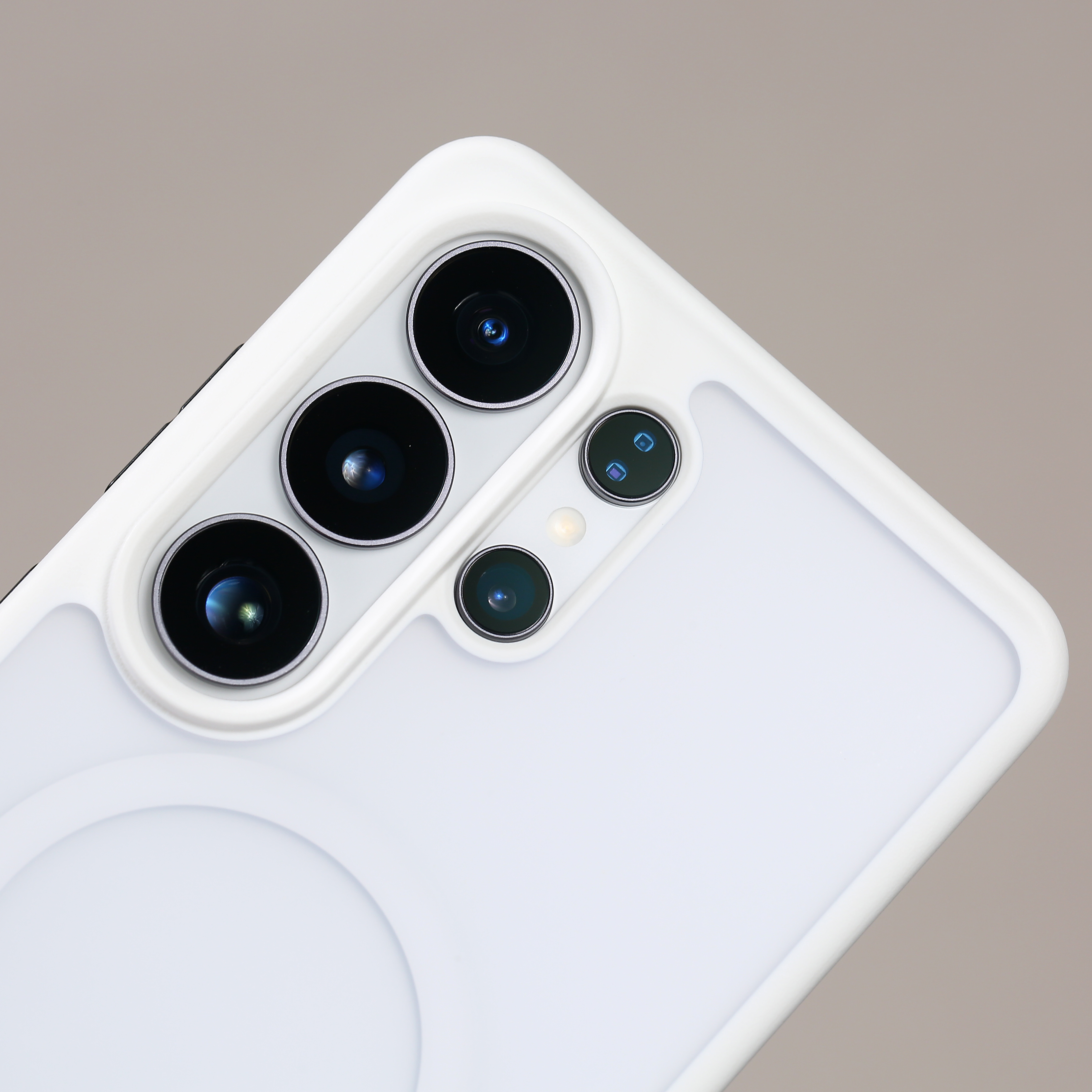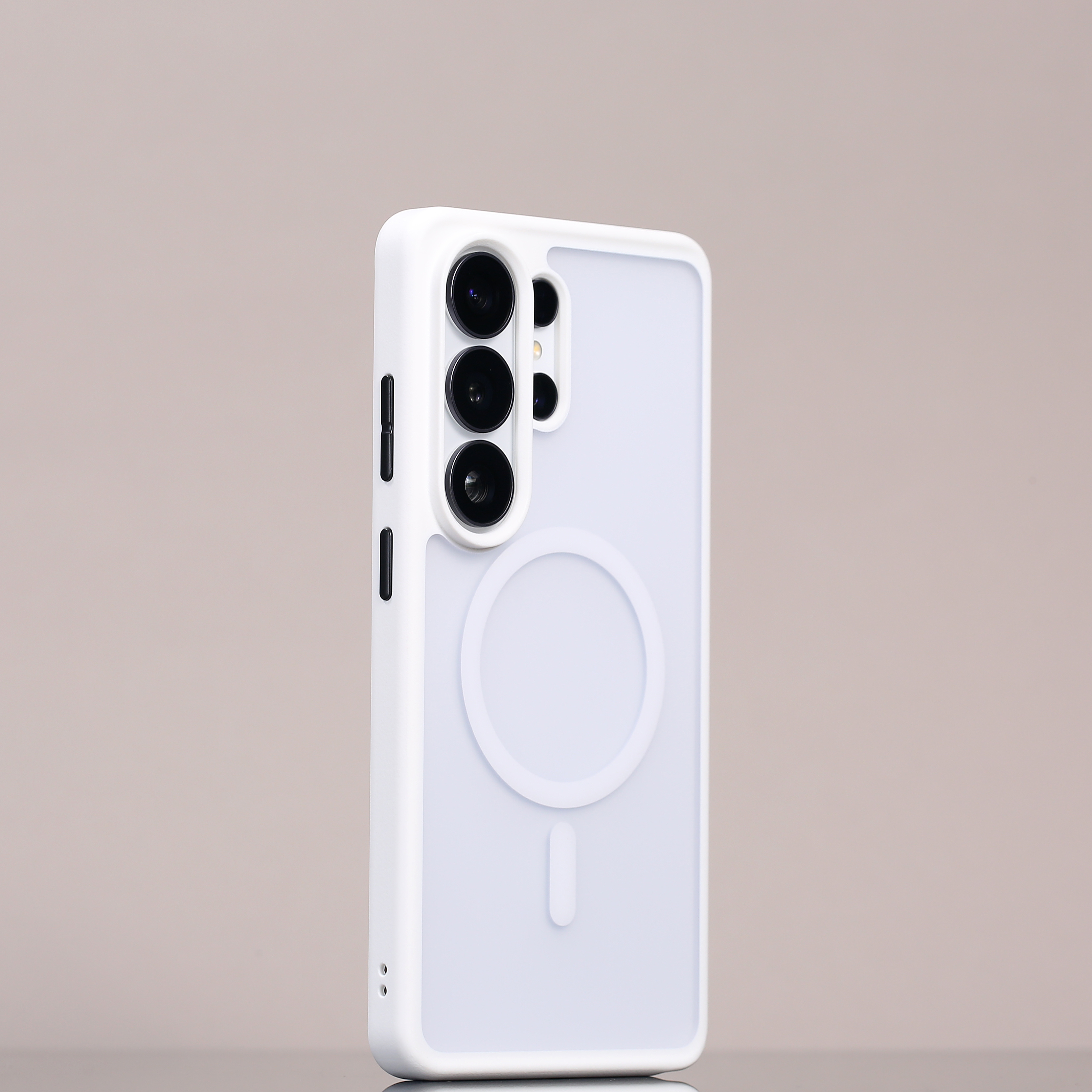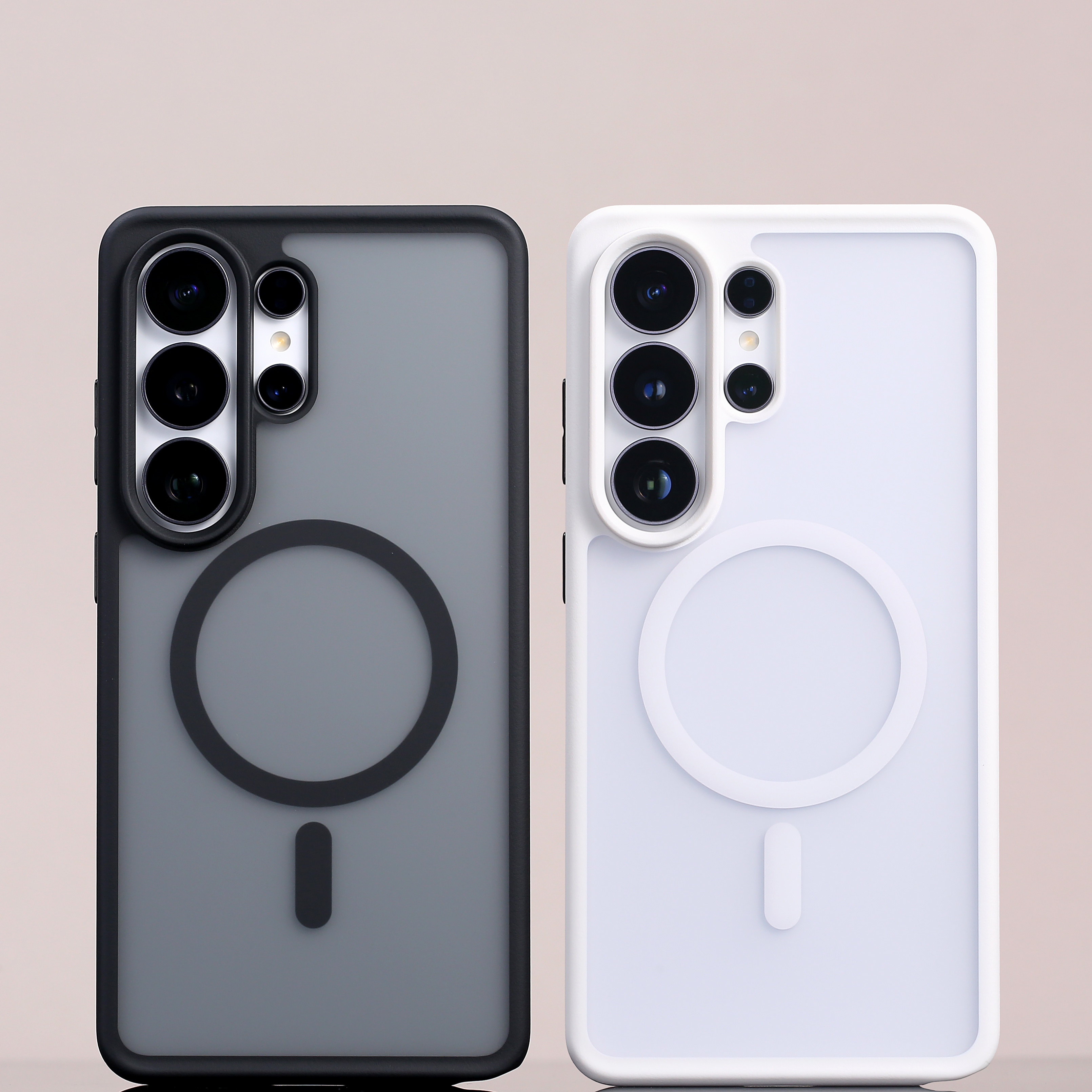 三星 S26 Ultra 磁吸撞色壳也来了,白色和碳黑双色可选,经典百搭。正面屏幕与摄像头区域都高出保护,这款是强力防摔壳,整体会厚重一些,防护力相当出色。