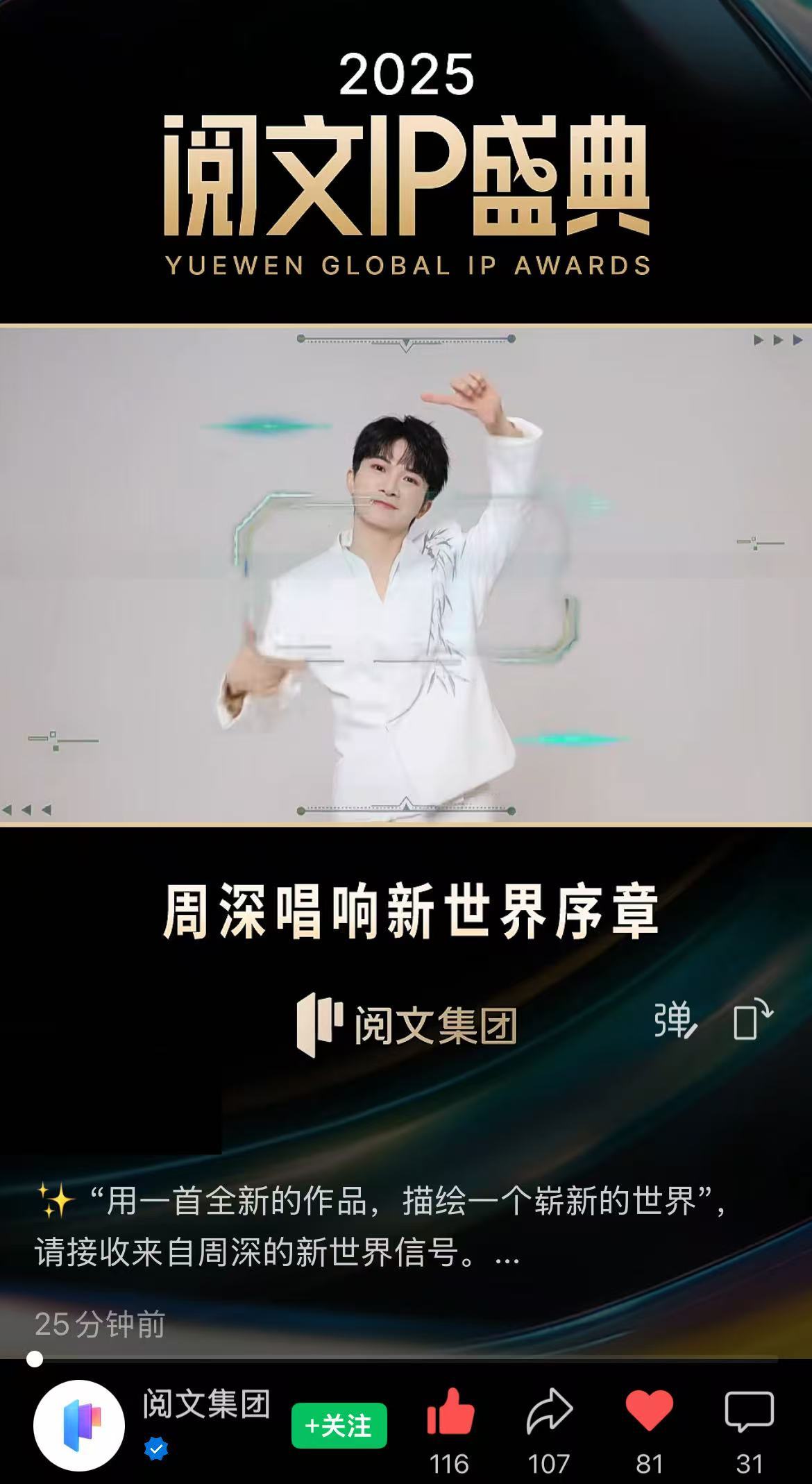 【阅文情报官】小🍠【阅文集团】vx视频浩更新新歌深深相关,米子们快来完整观看并多多三连互动