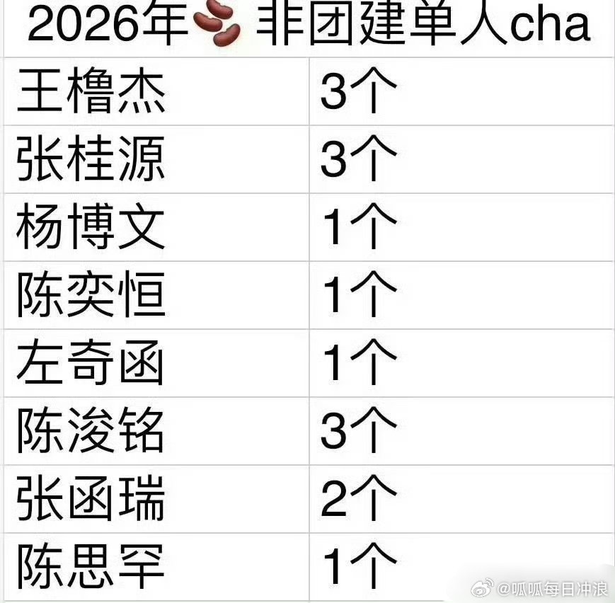 TF四代今年非团建的单人cha:王橹杰3、张桂源3、杨博文1、陈奕恒1、左奇函1、陈浚铭3、张函瑞2、陈思罕1,你觉得谁的cha是真出圈?