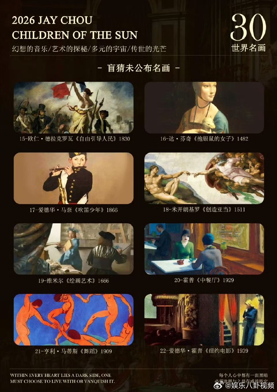 周杰伦新歌MV有30幅世界名画太阳之子 MV 上线,周杰伦用 2000 万 + 30 幅名画,再次定义华语 MV