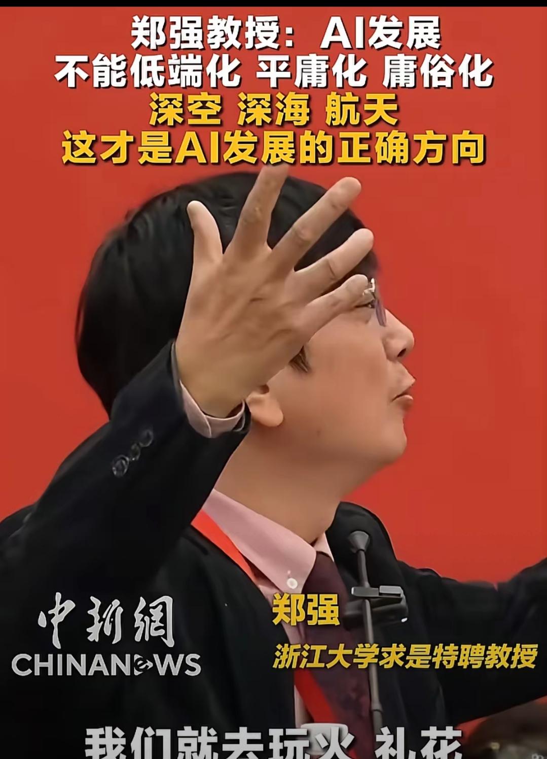郑强教授这番话太清醒!AI不该内卷抢饭碗,更该为国铸重器! 把顶尖技术用在送外卖、抢底层生计,完全是大材小用。AI真正的使命,是冲向深空深海、扎根国防航天,去完成人类难以触及的任务,守护国家底气。外卖再快撑不起民族脊梁,技术向善才是核心。 高科技的初心是造福百姓,不是挤压普通人的生存空间。与其内耗内卷,不如聚焦硬核突破,让科技有温度、有格局。 你认同AI要向高精尖领域发力吗?