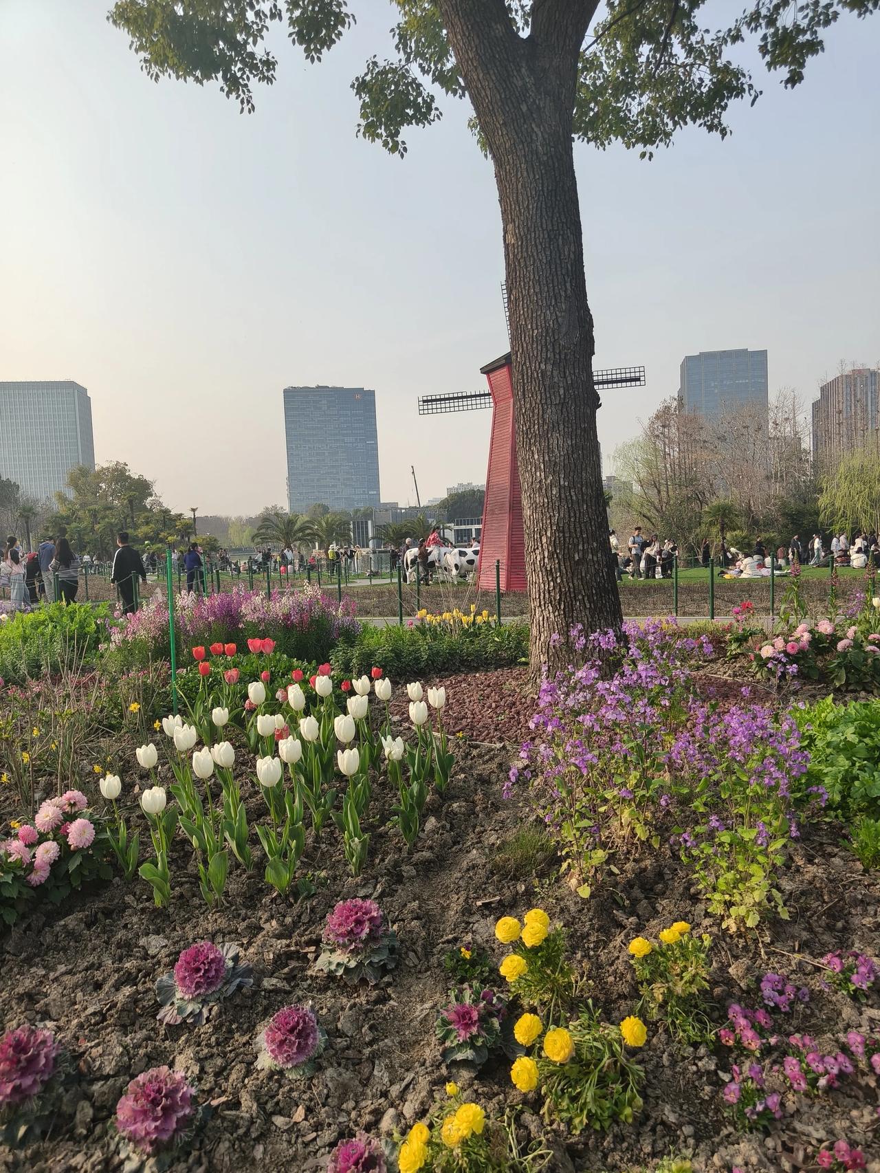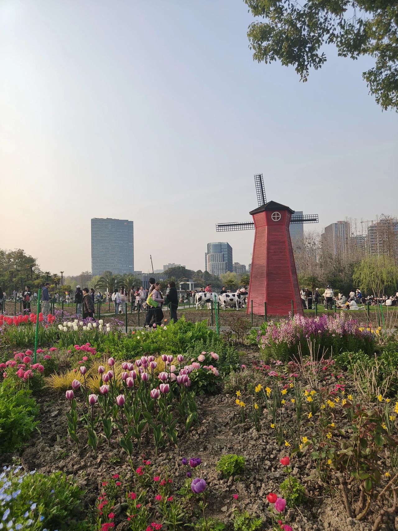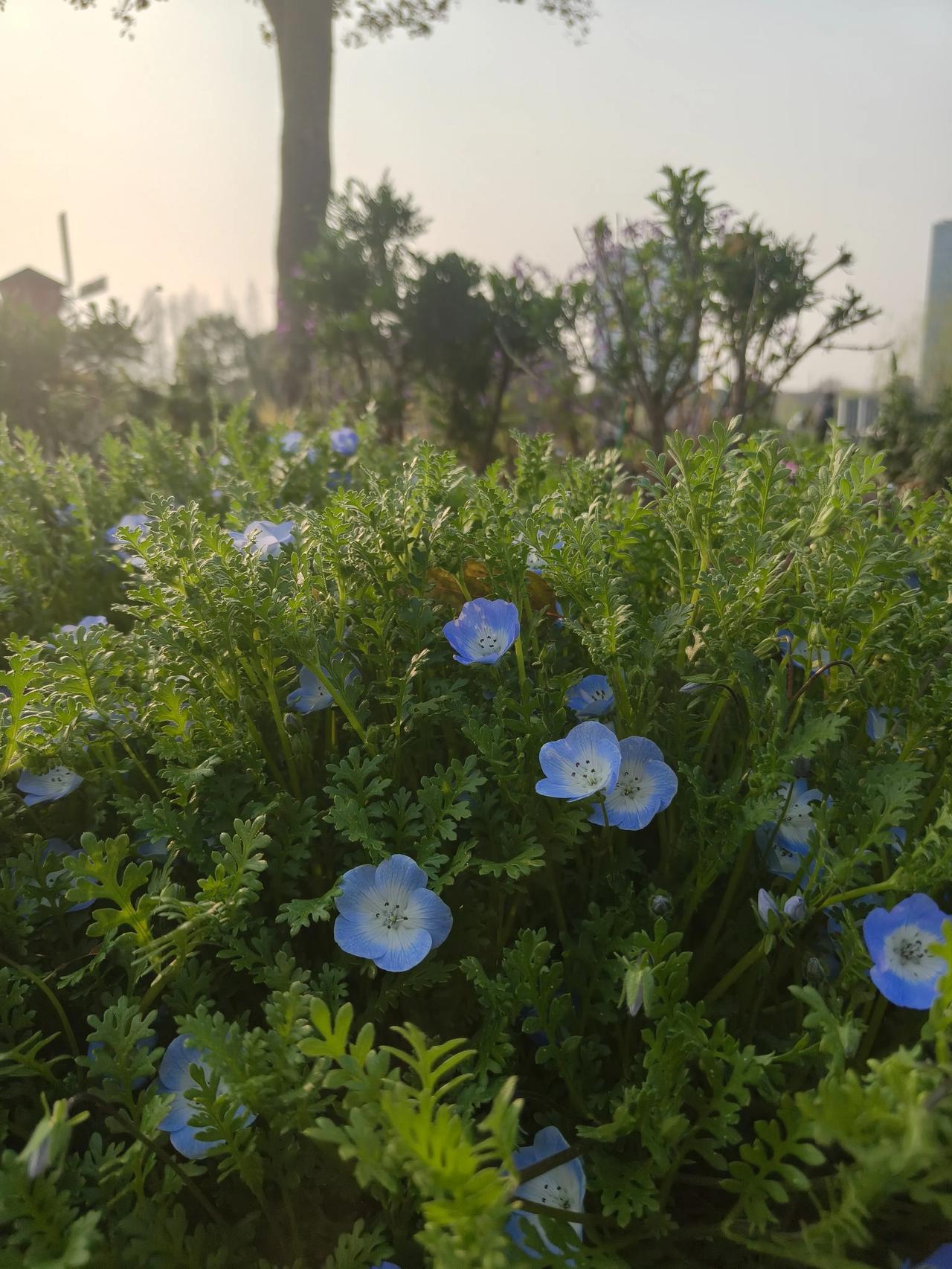 大宁灵石公园赏花随手拍实景图分享! 柳树下竹林旁的小鸭子🦆和大白鹅🪿🪿 红叶李,郁金香🌷还有那个蓝色 小花花∠※叫~粉蝶花🌸 又叫~婴儿蓝脸,是不是挺形象哈~[捂脸]