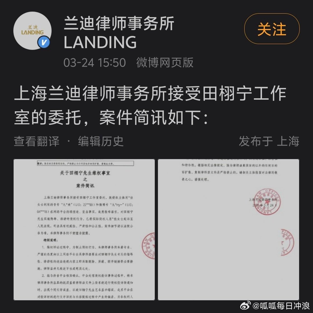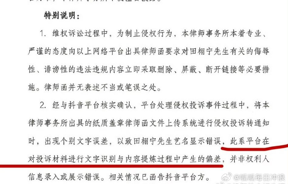 田栩宁维权,已经将九成美起诉,同时律所还专门澄清了平台艺名显示错误的问题。 律所发布田栩宁维权案件简讯