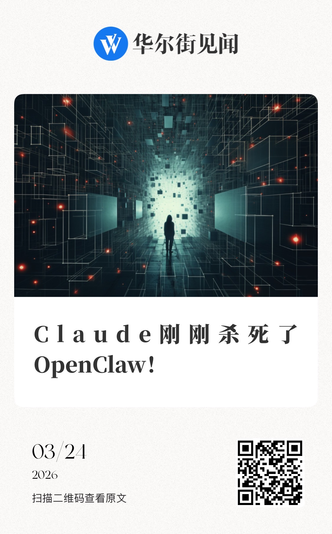 (原标题《Claude刚刚杀死了OpenClaw!》)“华尔街见闻”分享链接:网页链接