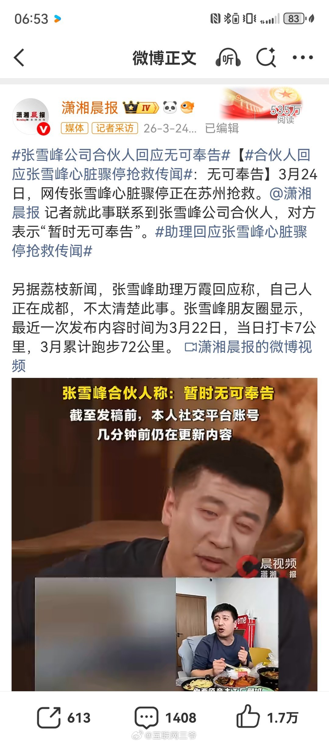合伙人回应张雪峰心脏骤停抢救传闻助理回应张雪峰心脏骤停抢救传闻刚下飞机,飞机上刚刷了一部电影《恶意》,讲得真是当下媒体舆论环境问题,还没确认消息呢,就为了流量直接发张雪峰 心脏骤停了?