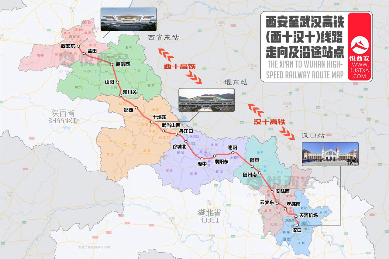 西十高铁湖北段率先启动联调联试工作,检测及测试动车组将在不同规定测试速度下,对沿线各系统功能、性能等进行综合检验。线路起自西安东站,向东南方向于十堰东站接入已运营汉十高铁,形成西安至十堰1小时、襄阳2小时、武汉3小时的快速铁路客运通道。西安