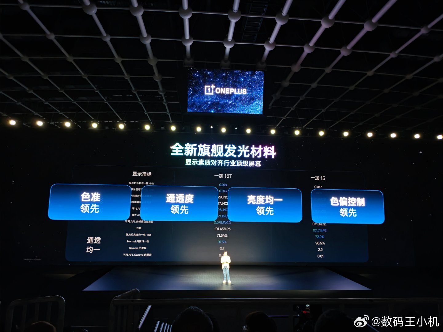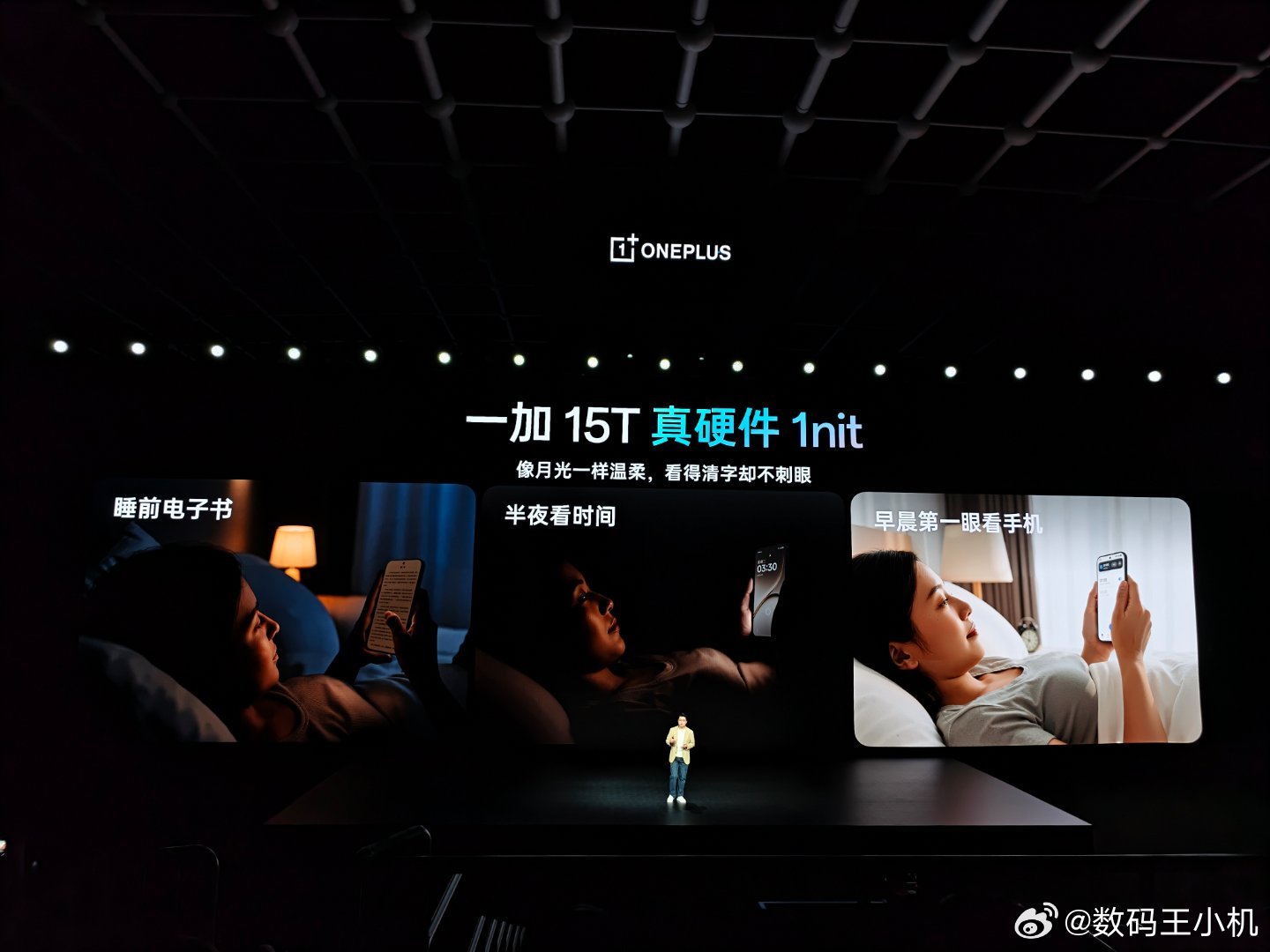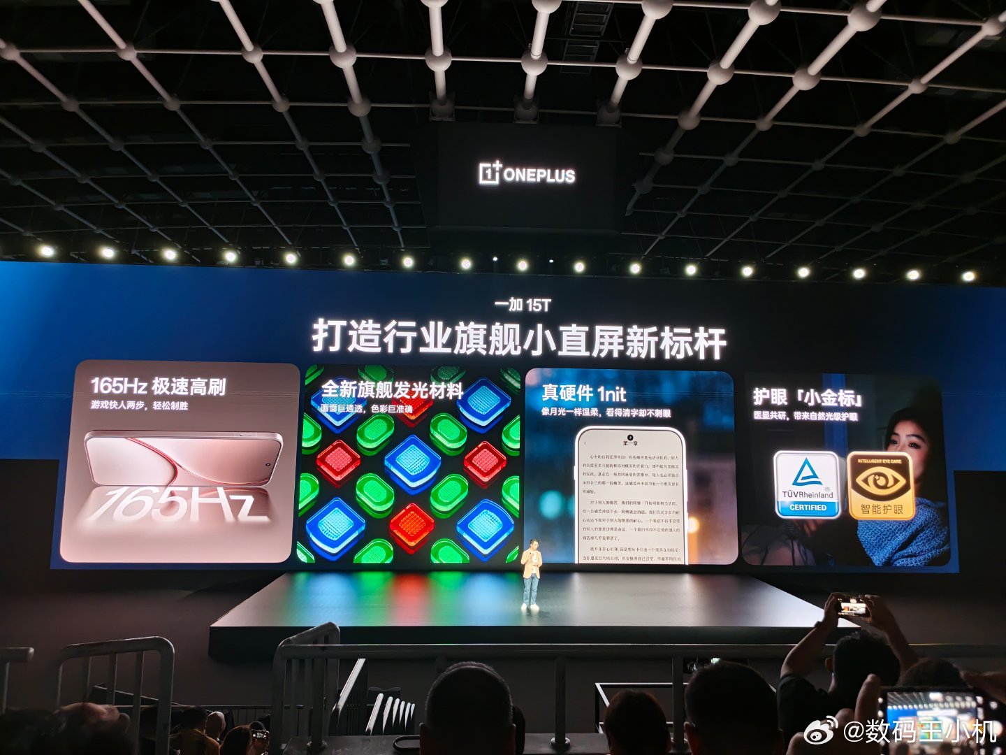 一加15T的旗舰体验,完胜所有小屏。一加15T搭载行业顶级小直屏,配备独家 165Hz 极速高刷与全新旗舰发光材料,不仅游戏体验极致流畅,更将色准、通透度、亮度均一性等屏幕素质关键指标做到行业领先。凭借顶级屏幕素质与调校,一加15T搭载的小直屏实现全场景「真硬件 1nit 暗夜显示」。经过自研「屏幕科学产线」二次校准,一加15T带来极致通透的显示效果。护眼方面,一加15T 搭载全新「明眸护眼」方案,配合 3840Hz 超高频 PWM 调光与行业领先的蓝光控制,大幅降低视疲劳与眼干涩,并斩获行业唯一小屏护眼「小金标」,带来行业旗舰小屏新标杆!