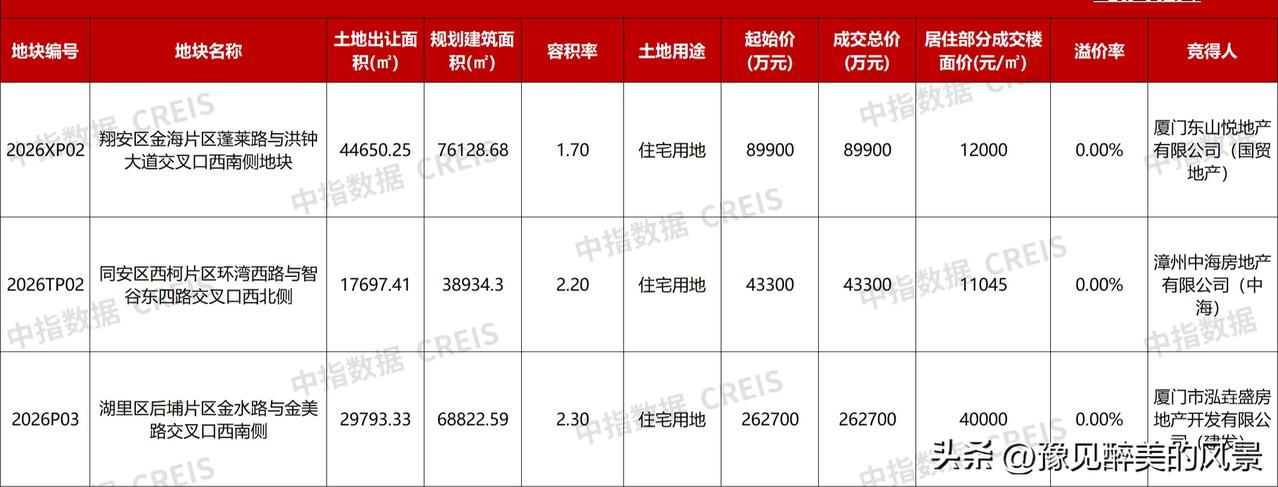 厦门怎么了,今天厦门土拍着实有些不给力啊,位于同安、翔安以及湖里的三幅地块没有一个溢价成交的,都是托底成交,在之前厦门只有有住宅地区拍卖,无论多偏僻,都会有开发商溢价拿地,而且开发出来的房子还不愁售卖,如今怎么了,就连位于厦门主城区的那幅地块都没有溢价,虽然楼面价也达到了4万元,但是不及预期,要知道这可是位于市中心的地块啊,在之前至少也得楼面价5万左右,如今这个价格拿下来,开发商简直是赚到了,开发出来的房子应该不愁卖。