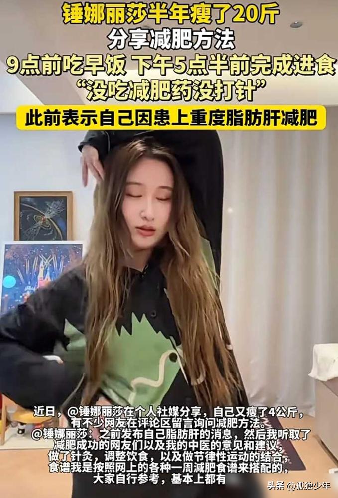 锤娜丽莎减肥刷爆热搜了!2025年4月她查出重度脂肪肝,可不是为了变美,纯纯是为了保命才开始的。一开始半年瘦20斤,到11月靠打羽毛球这些动得快30斤,每月也就3-5斤,完全符合华西医院专家说的每周瘦1斤的安全标准。她的方法真的普通人能抄,早9点前吃早餐,下午5点半后就不碰东西, 这才叫靠谱的减肥。不是为了穿衣服好看,不是为了上镜,是体检单上“重度脂肪肝”那几个字逼的,是保命,是治病。这个出发点,就比90%的节食、吃药的强。健康出了问题,身体拉响警报,动力和决心完全不一样,不容易半途而废。 再看她的速度,半年20斤,后面几个月到30斤,平均下来一个月3-5斤,一周就掉一斤左右。这速度,在那些追求“七天瘦十斤”的营销号眼里,可能太慢了,不够“爆”。但华西医院的专家说了,每周瘦1斤左右,才是安全、可持续、不伤身体的标准速度。掉秤太快,减掉的往往是水分和肌肉,基础代谢率跟着掉,一旦恢复饮食,反弹得飞快,还伤肝伤肾。锤娜丽莎这个速度,恰恰说明她减的是实打实的脂肪,方法科学,身体能适应。 她的方法,核心就两条:管住嘴,迈开腿,而且都特别“接地气”,普通人完全能复制。管住嘴,不是让你不吃,是讲究“时间”。早9点前吃早餐,下午5点半后不进食。这其实就是“8小时进食法”的温和版,把一天吃东西的时间压缩在8-9个小时内,给肠胃和身体代谢一个长时间的休息窗口。不用精确计算卡路里,不用顿顿水煮菜,就把握好“早吃、晚餐提前”这个原则,就成功了一大半。对上班族来说,下午5点半后不吃,可能需要适应,但绝对可行,晚上饿了就早点睡。 迈开腿,她选了打羽毛球。这不是在健身房对着镜子撸铁,也不是跑得气喘吁吁。羽毛球有意思啊,有对抗,有互动,能坚持下来。关键是她“动”起来了,而且频率不低。减肥,尤其是大基数开始减,选一个自己喜欢的、能长期坚持的运动,比选一个“燃脂效率最高”但你很讨厌的运动,重要一万倍。喜欢,才能持续;持续,才能见效。 所以,锤娜丽莎这波热搜,价值很大。她给所有被减肥困扰、又总失败的人打了个样:减肥不用那么痛苦,不用那么极端。从健康警示出发,设定合理的目标(比如先逆转脂肪肝),用温和可坚持的饮食调整(控制进食时间)加上一项喜欢的运动,慢慢来,每个月瘦几斤,坚持下去,就是胜利。这比任何减肥药、代餐广告都实在。想减肥的,真可以“抄作业”,关键是那份为了健康的决心,和坚持下去的耐心。 各位读者你们怎么看?欢迎在评论区讨论。150斤减肥记 锤娜丽莎走红毯 明星减肥图鉴 锤娜莎 减脂辟谣