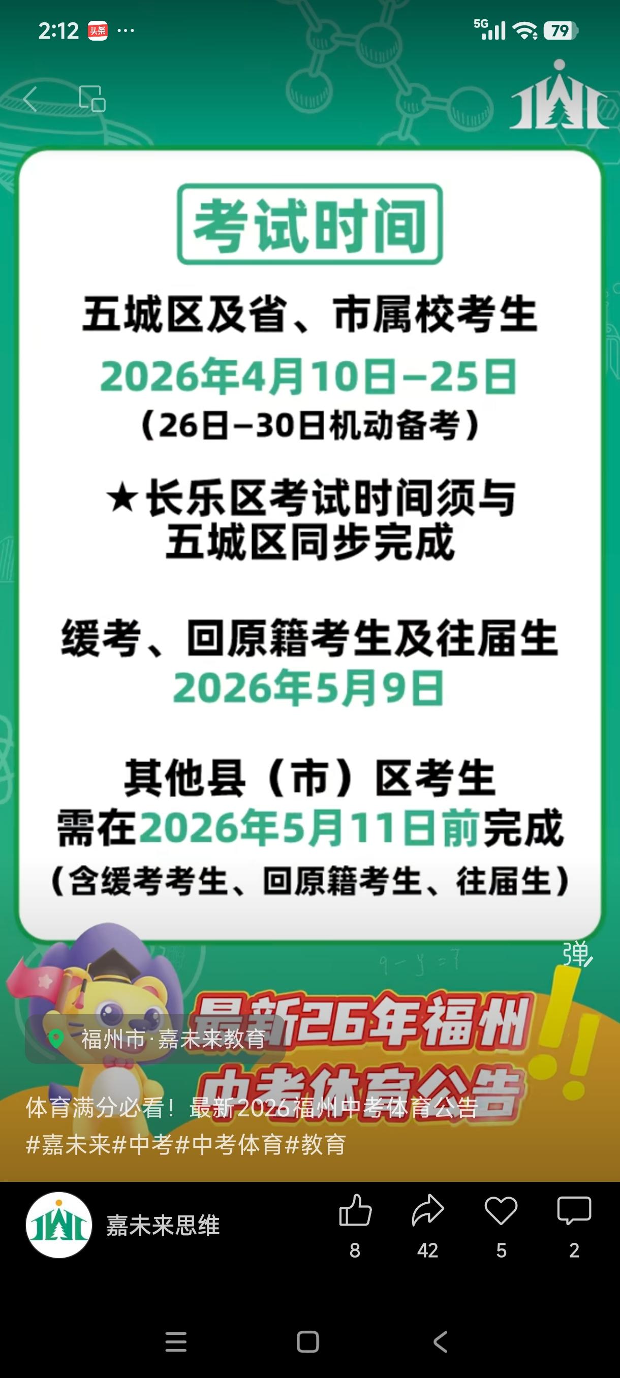 2026年福州体育中考迎来重磅调整,三大球抽考改自选;体育笔试正式取消;总分还是40分不变。政策优化,对初三毕业班还忙着学习的孩子们意味着什么?考前的最后冲刺准备,在策略上如何做到最优化呢? 2026年取消了总分4分的体育笔试,将这4分并到技能测试中的球类测试,也就是以往球类测试的5分变成了今年的9分, 另外三大球的抽考项目改成了,今年开始由考生自己选择一项作为球类技能的测试。中考体育考点改清华附中福州学校体育中心了!去年是在海峡奥体中心(是办赛场地冲突么?)。 考点一换,整个初三体考的标准场地、路线、检录点这些小方面细节都会发生相应变化,考前有条件的家长和考生们还是要多方面去了解去提前熟悉一下。 考试时间定下来了是4月10日到25日。 现在3月底了,马上就要准备上考场了,适应性体育训练可以抓紧,但千万不可猛练硬练,担心身体受伤得不偿失,这个时候孩子们稳住心态稳住身体状态,稳抓稳打来更重要。初中体育考核 初三体育提分 中高考体育达标 初三体育测试 中高考体育分值 中考体育计算 福州体育特长生 福州初三体考 实时更新福州教育资讯,关注并收藏