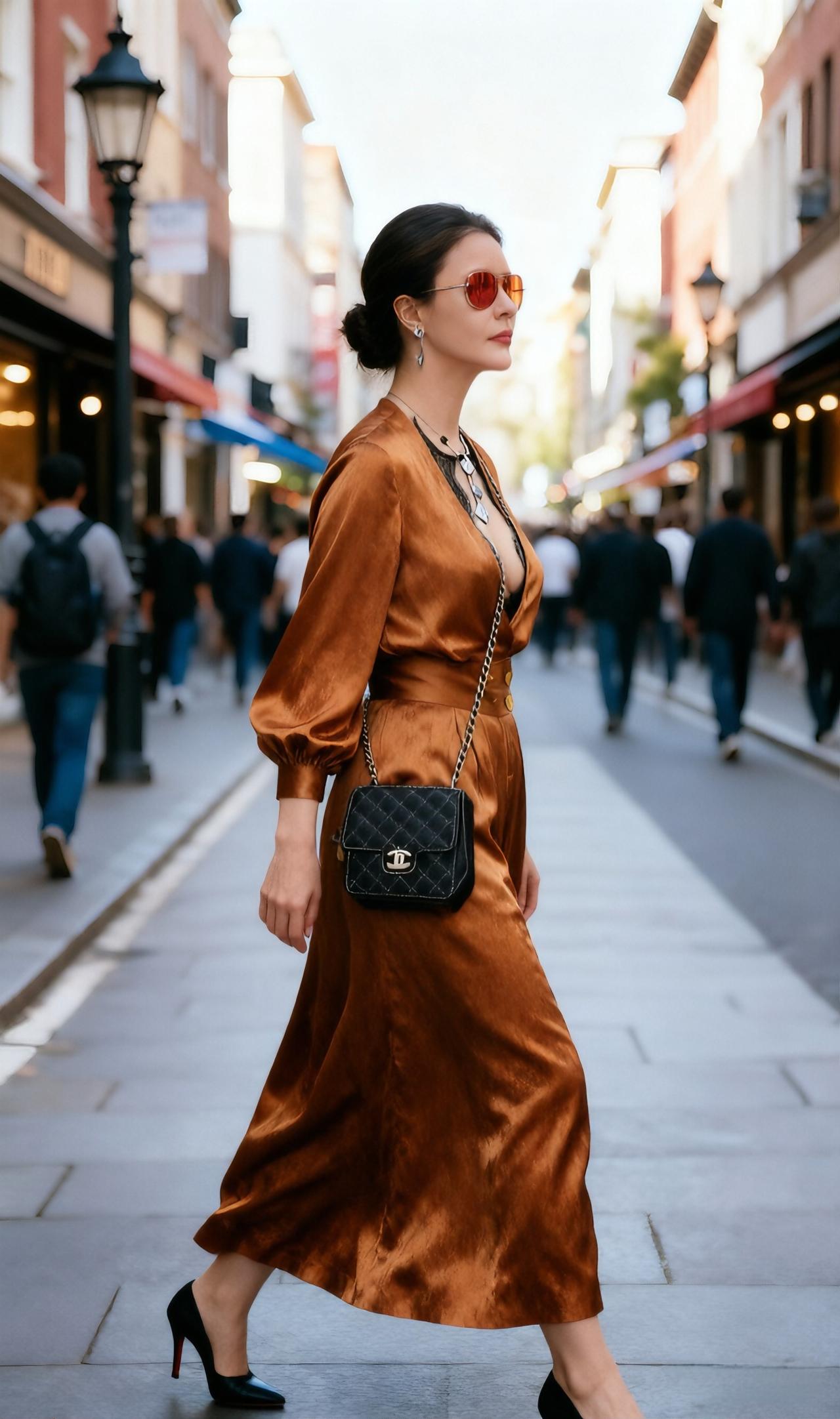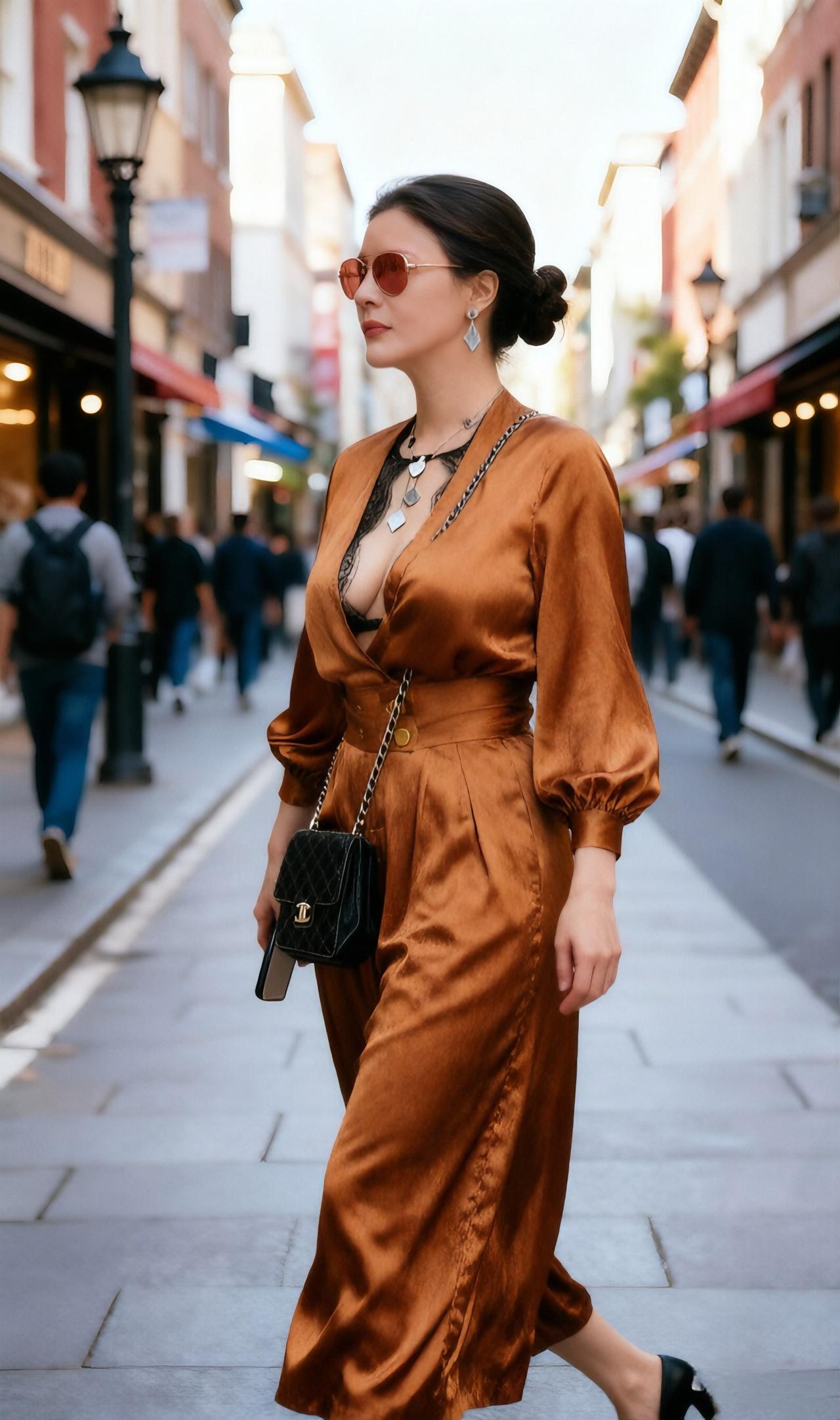 都市时尚风,棕色丝绒套装搭配墨镜,尽显优雅与自信!