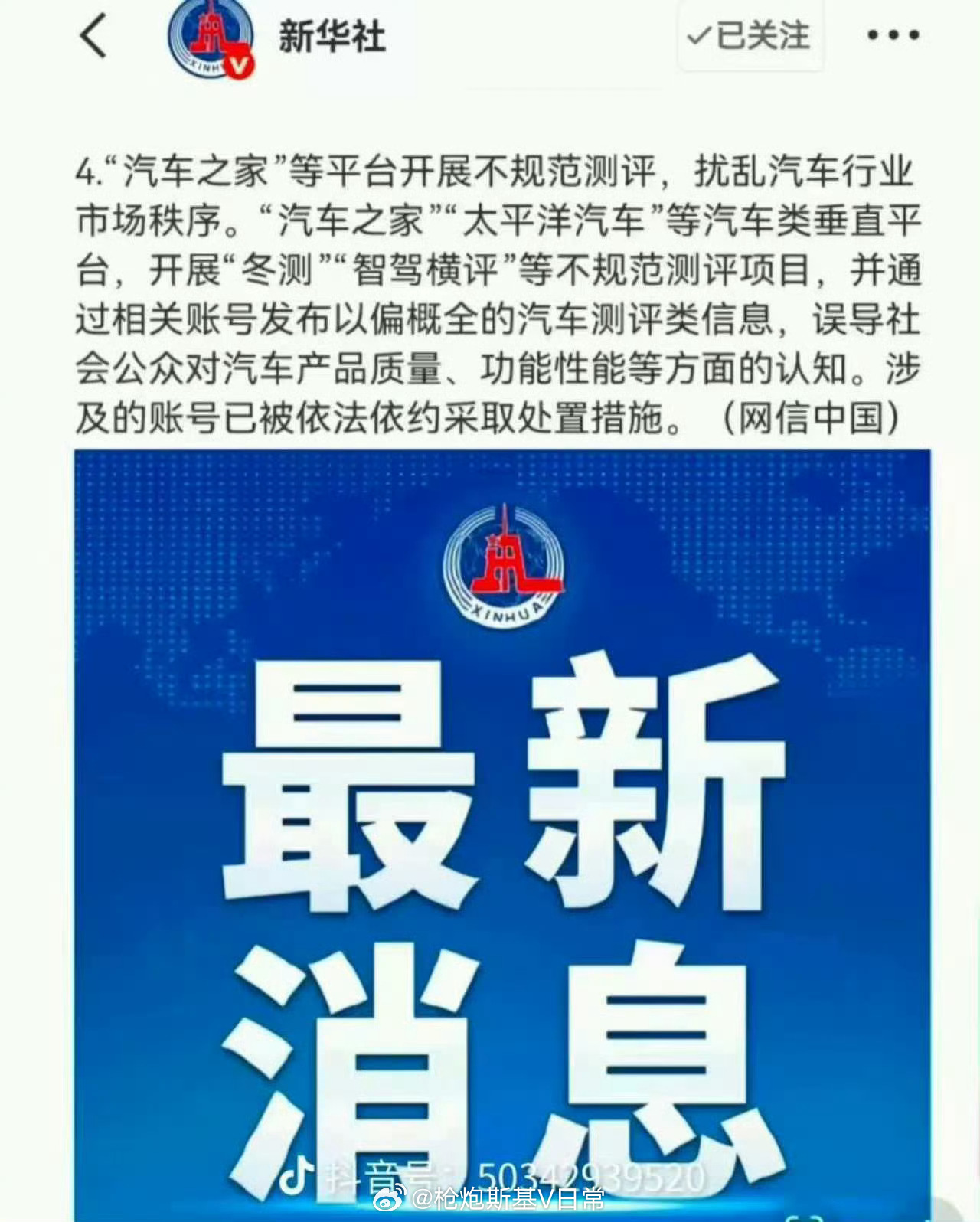 汽车之家多平台账号被禁止关注 这么看来问题可就不简单了啊,这么大的一个媒体平台,可不是小事儿哦。
