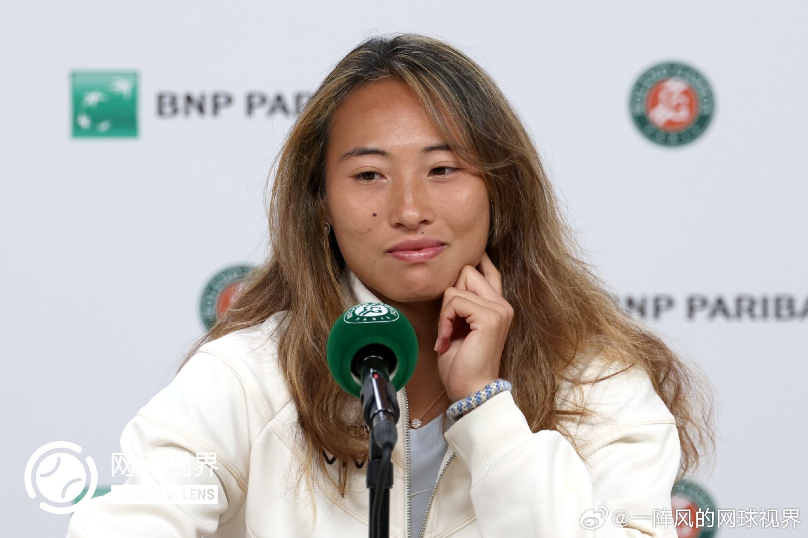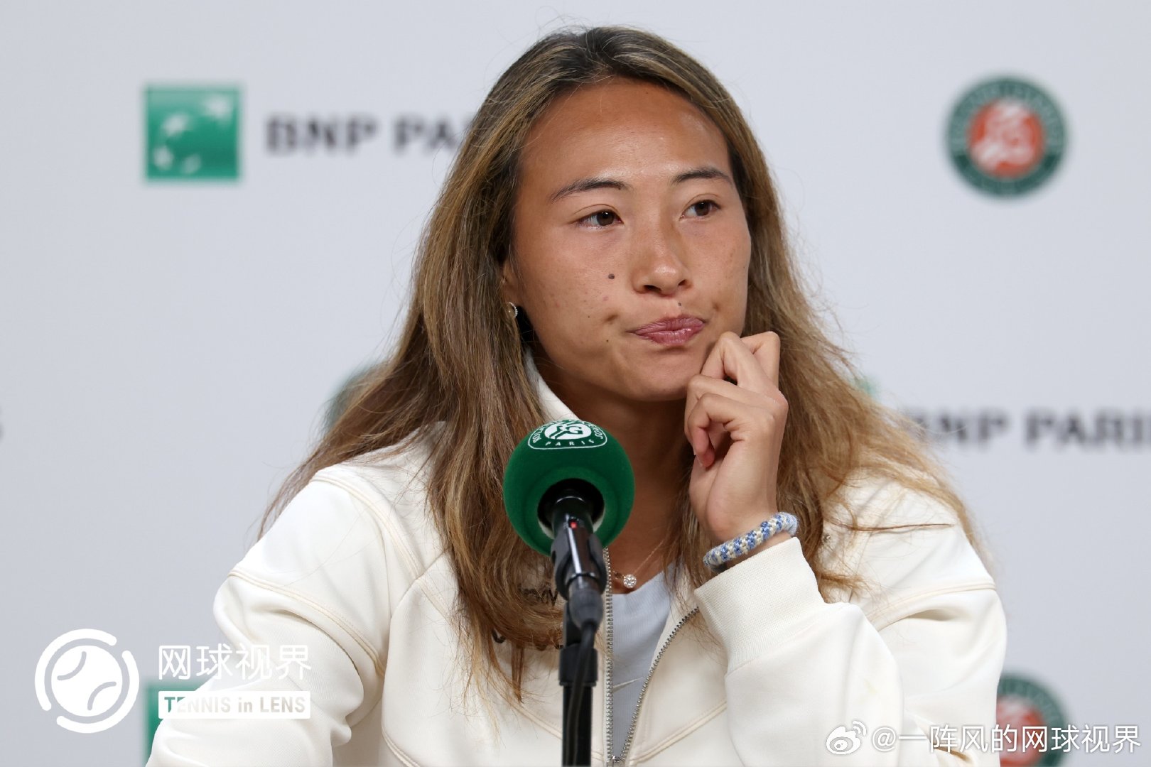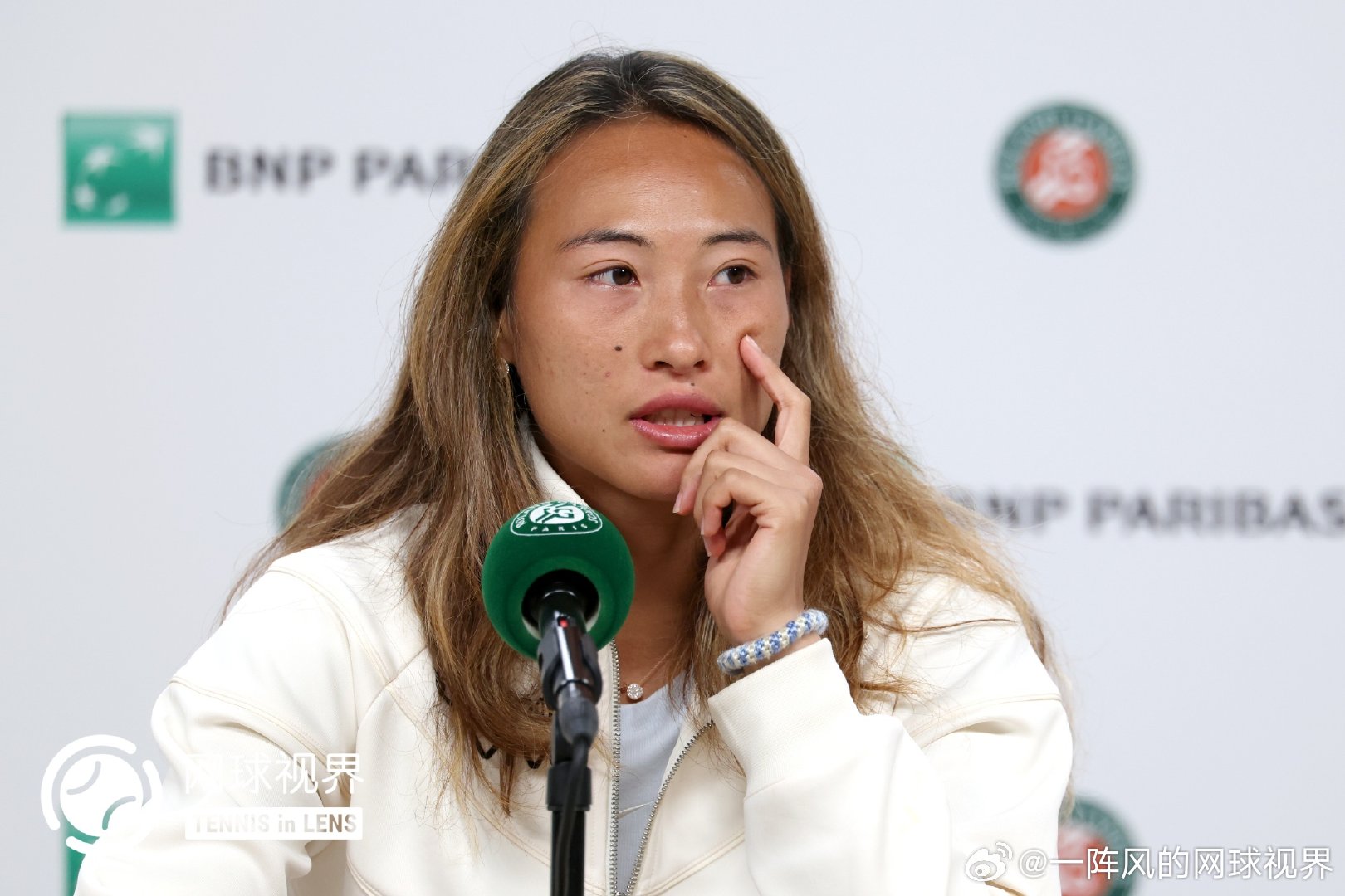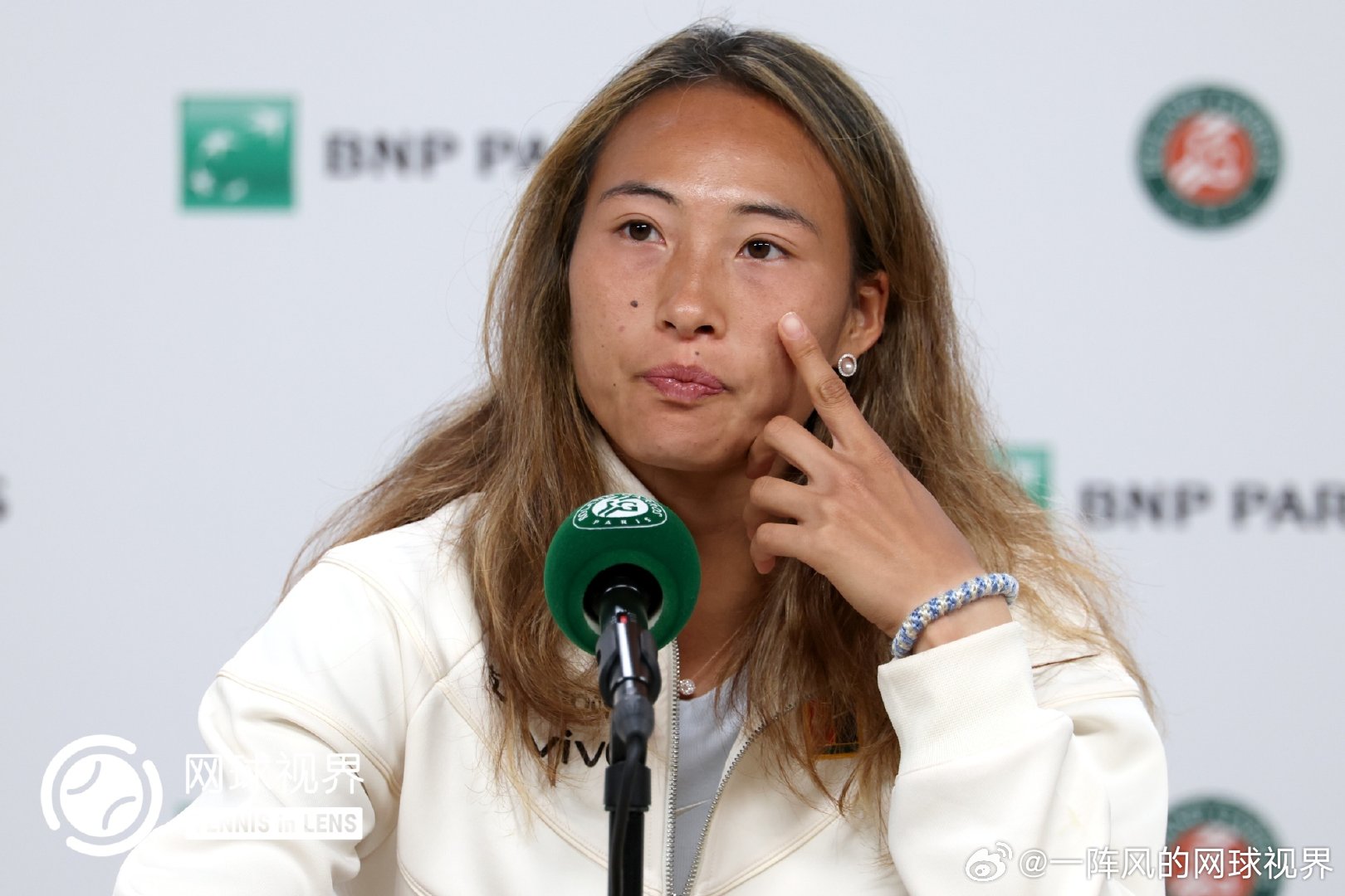 输给萨巴后的发布会上有记者问郑钦文虽然今天输了但是这次创造了个人法网最好成绩,你觉得现在是处在淋雨阶段还是已经看见彩虹的阶段,小郑眼圈泛红声音哽咽。她坦言太想赢下这场比赛,导致自己太过紧张没有真正把自己的实力发挥出来,没能在比赛中从始至终把战术贯彻下来。虽然这次法网刷新了自己的最好成绩,但是现在是处于输球的情绪当中,所以现在不是处于彩虹的状态,“因为我相信自己能做的更好。””从今天的比赛中学到最深刻的一点就是面对自己特别想赢的赛事的时候,还是要把心态放得更平一点,按照自己的想法去打球,不要过多的在意结果,今天确实把注意力放在了结果上,尤其是在领先的时候。但是不管领先还是落后我都得把心态放平,即使这是法网8强,或者不管是其他什么比赛,我都应该从一而终。”“输掉每一场我很想赢的比赛后我都需要时间好好消化,它会在我的脑海里不停的盘旋,为什么这个没有做好,为什么那个没有做好。但我觉得这都是一个过程,我可以从这个比赛中学到很多东西,可以让我在未来心态方面变得更强大。“郑钦文泪洒发布会️©️版权图片,转载请署名