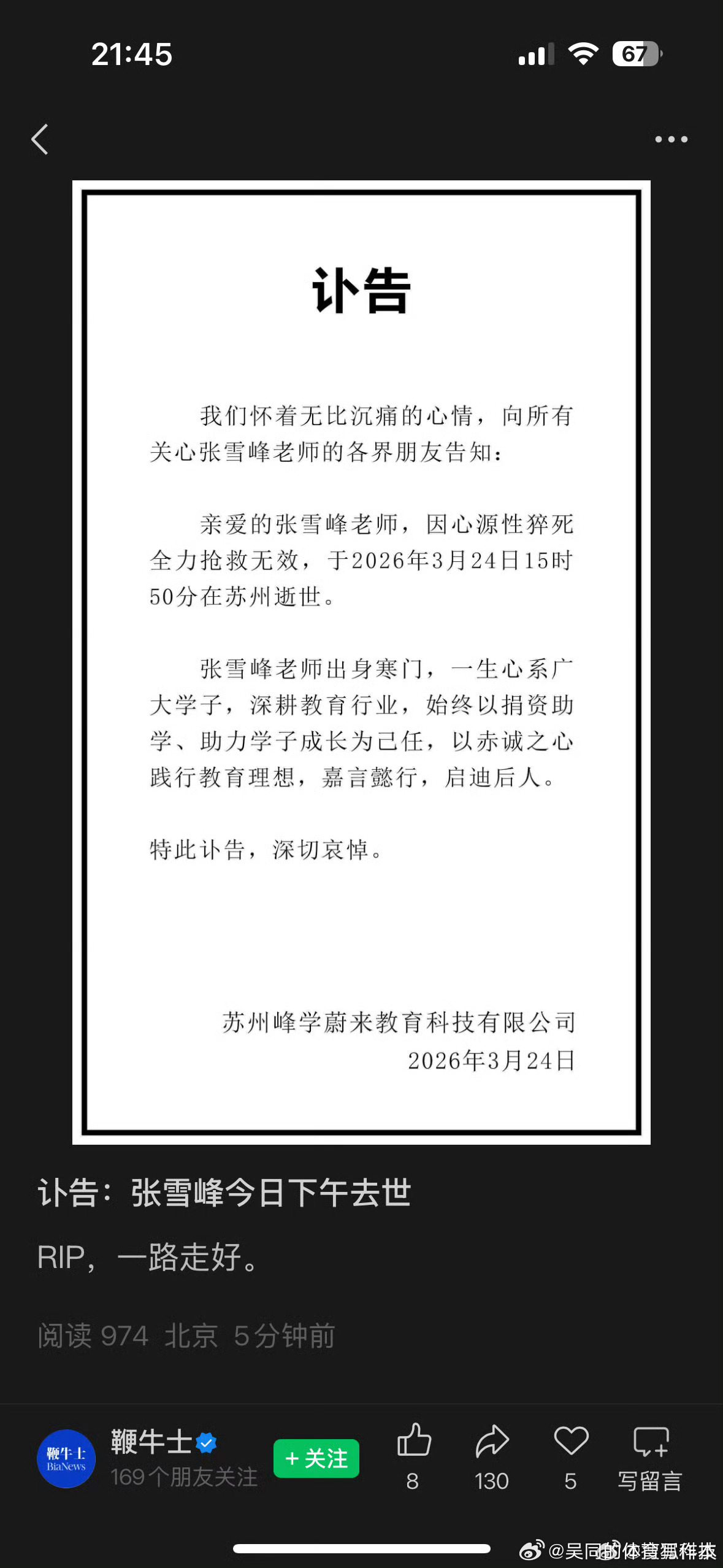 【中国足球封神榜】与截教首领,足球小将教父张雪峰并驾齐驱的“高等教育教父张雪峰”逝世。 张雪峰和董路有很多共同之处,并且一起做过节目。他们强调“选择大于努力”,强调“外行不一定不如内行”,强调“直播就是力量”,强调“刚毅”,不怕说话难听,勇于怼人…张雪峰的早逝源于过劳,董路教练也要注意身体!