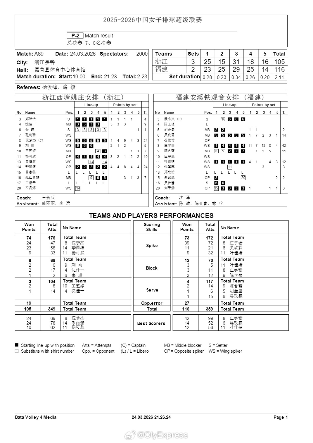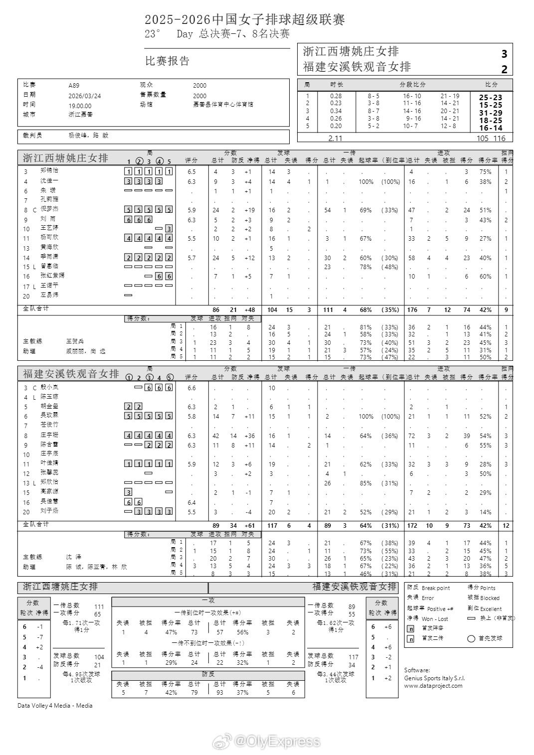 排超联赛3月24日,排超女排联赛技术统计见图。庄宇珊42分(72扣39中3拦)
