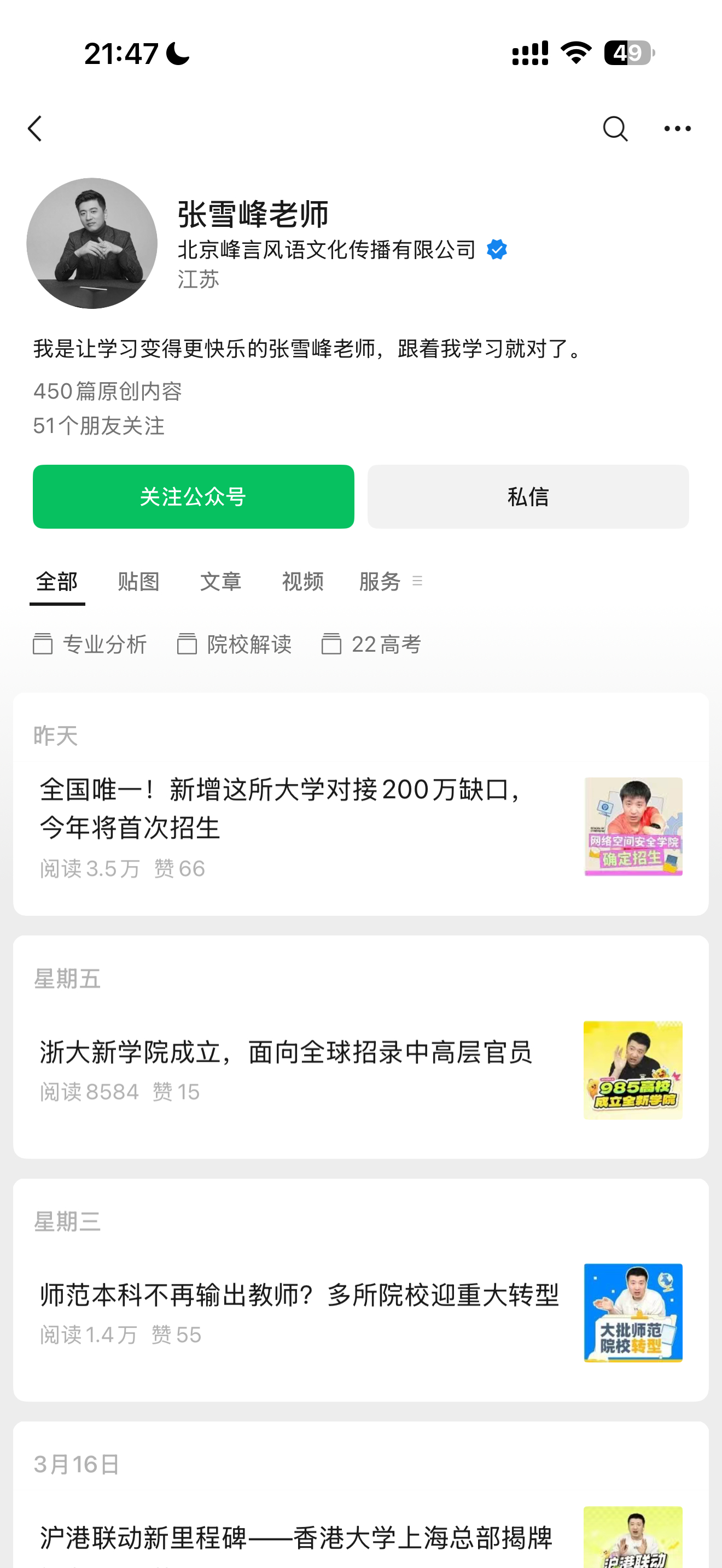 张雪峰几个平台的账号头像都变成黑白