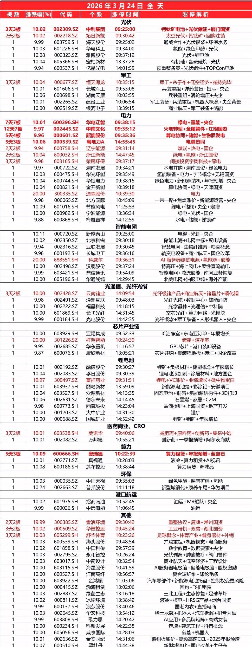 封板个股(3.24)