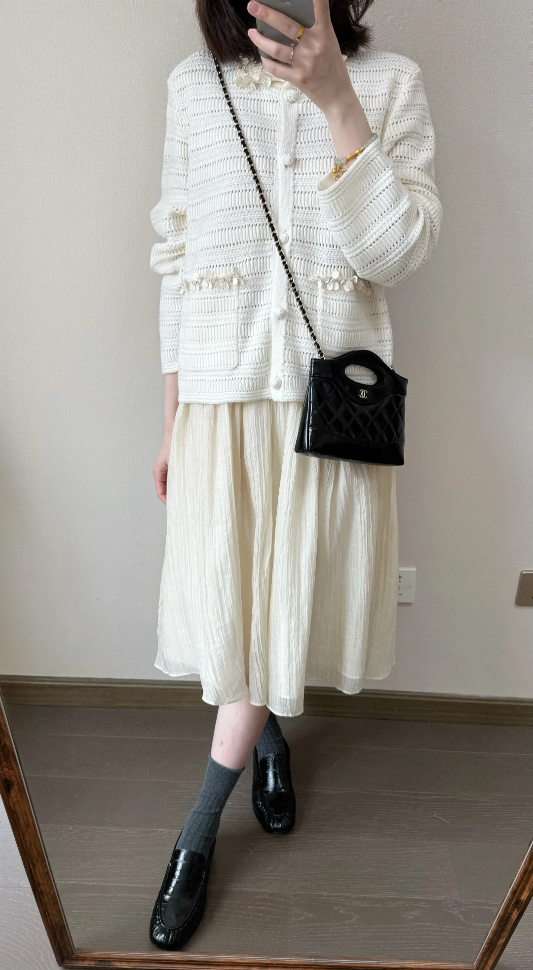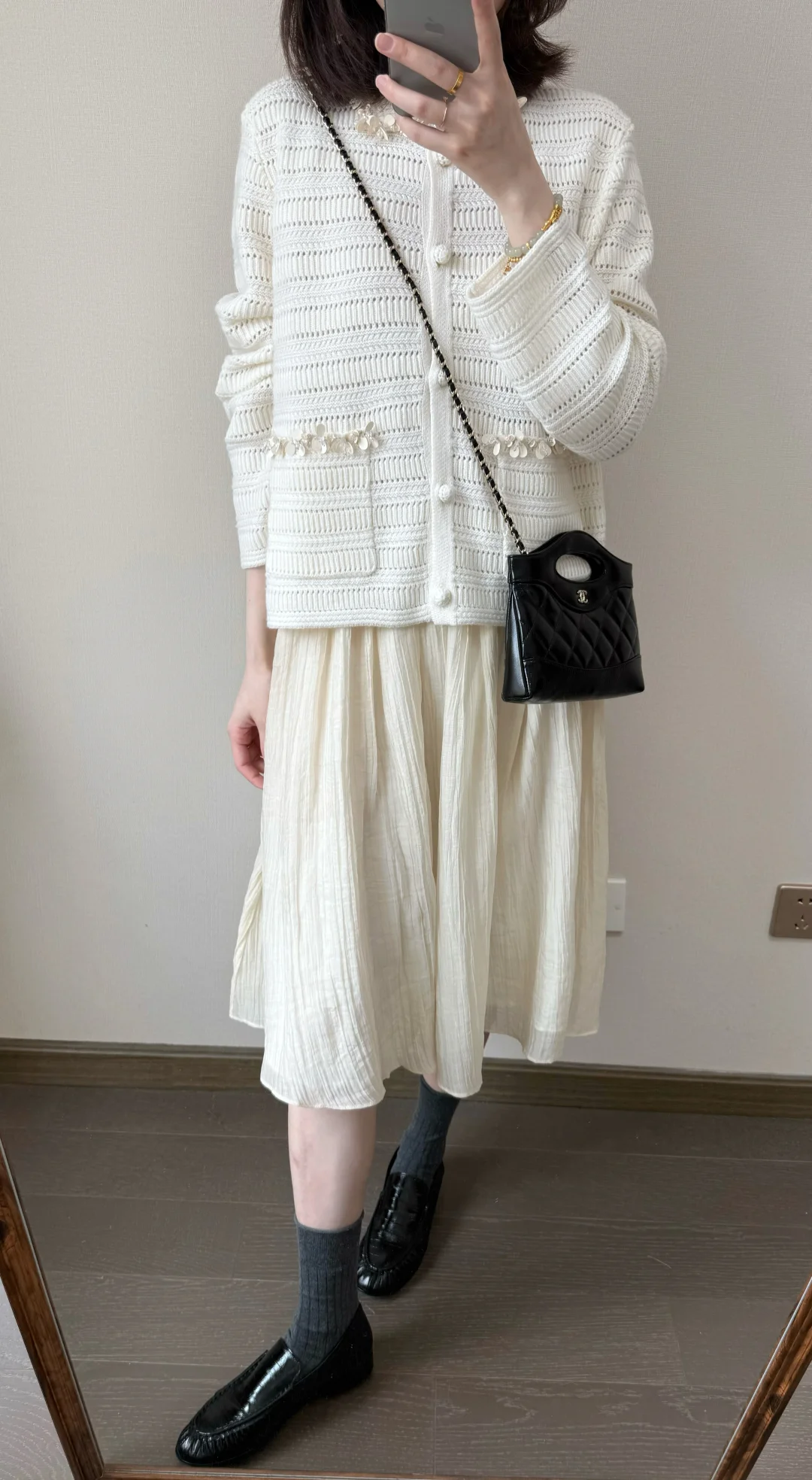 早春穿什么🍨/灰色针织和波点半裙