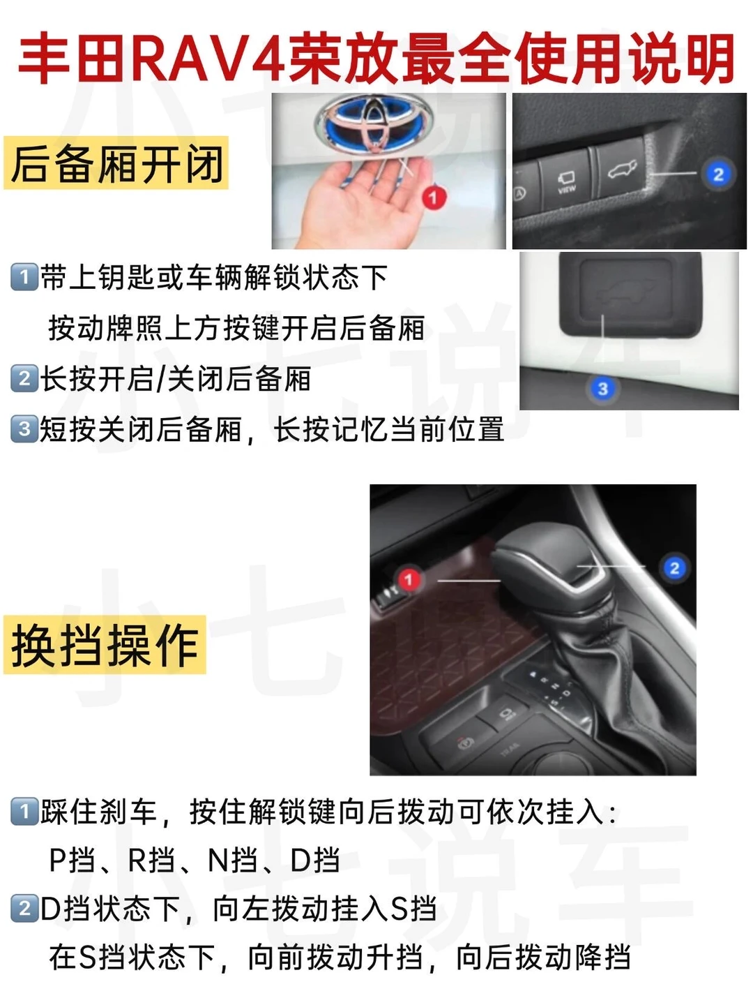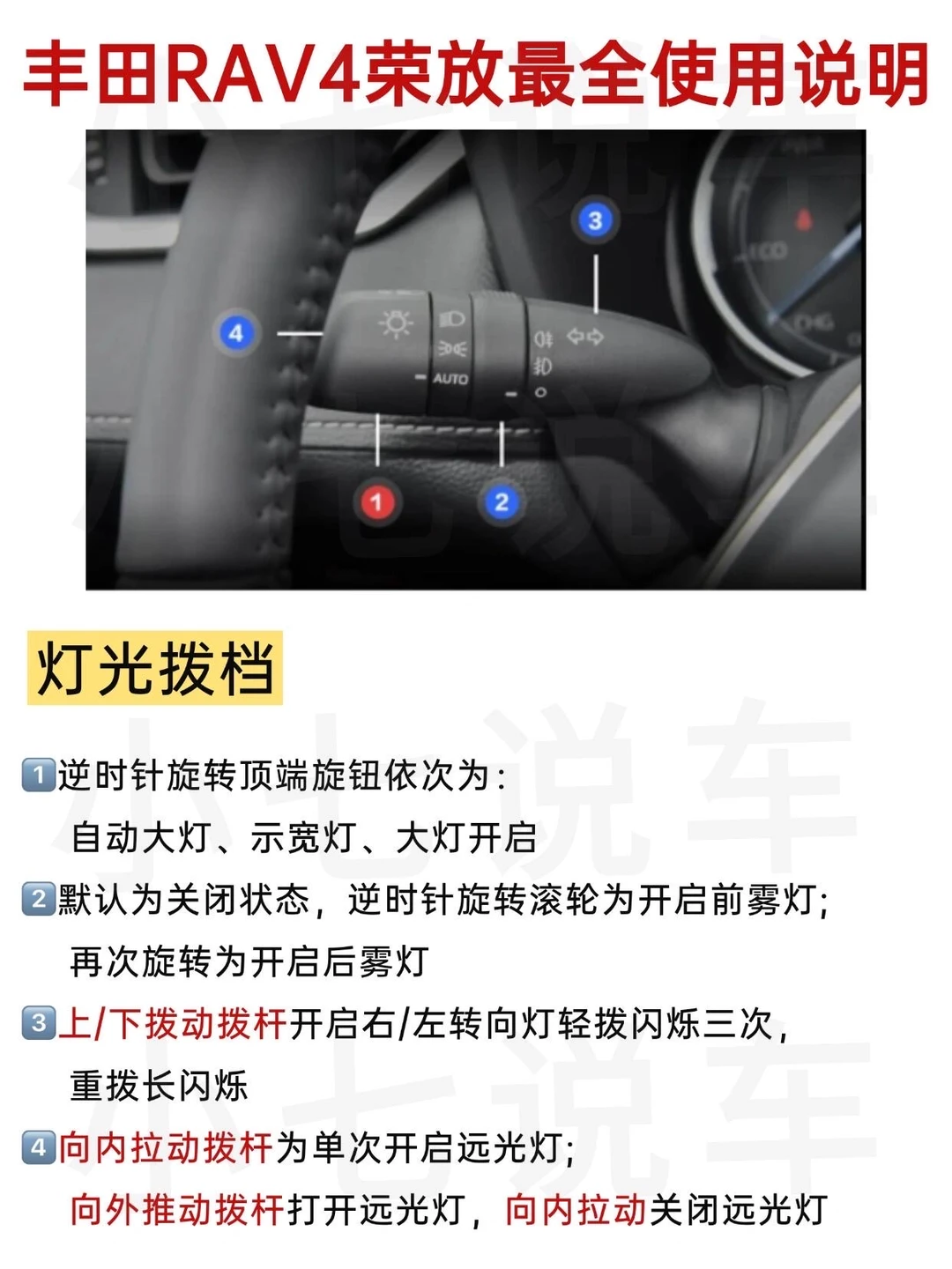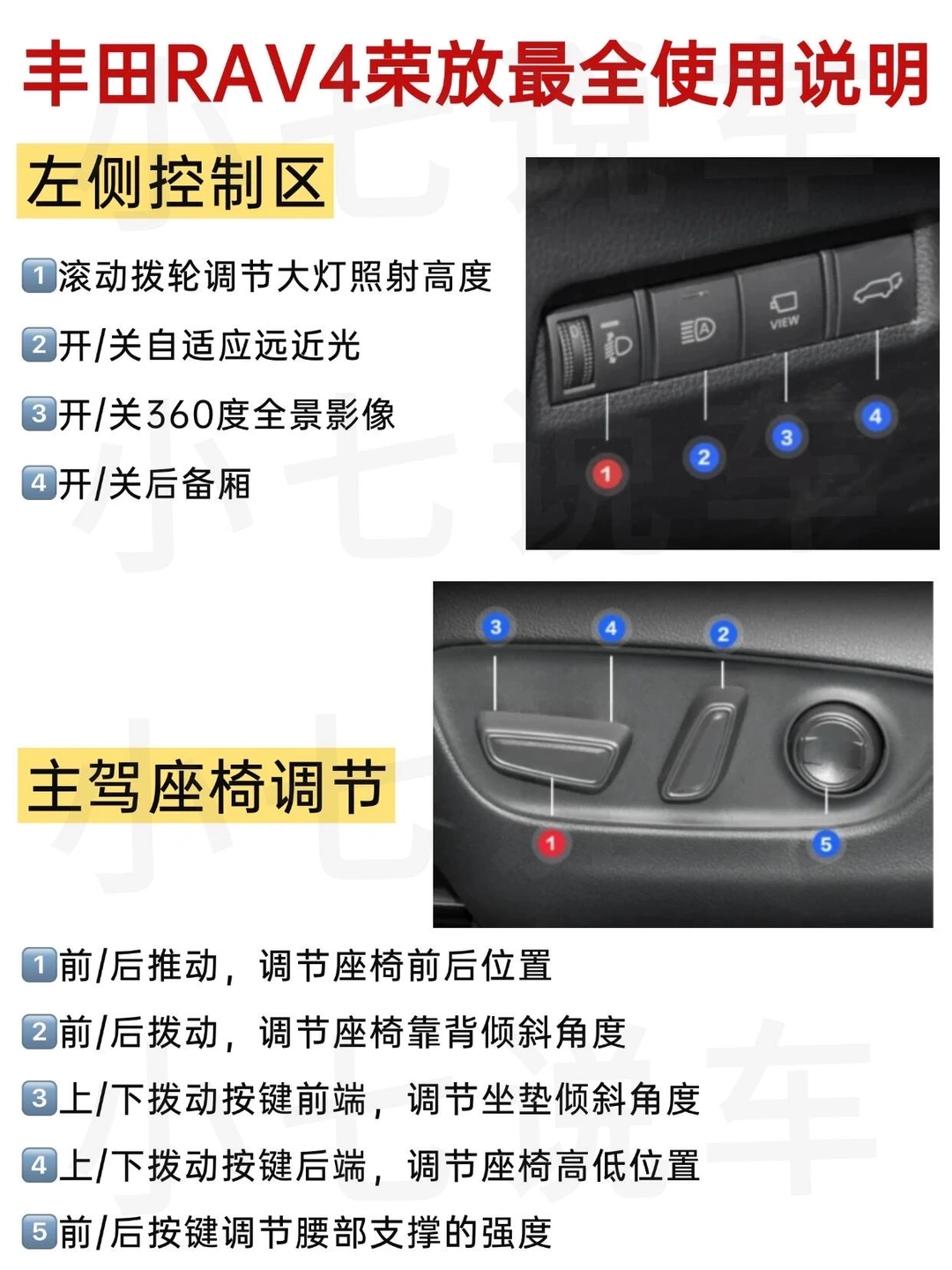 还有刚提完丰田RAV4荣放不知道怎么操作的吗?很多新手姐妹提完丰田RAV4荣放新车,不知道车上的功能按键的作用是什么😥,虽然开了很久,但是好多按键都不知道怎么用,今天小七给大家分享汽车🚘上各种功能按键都代表啥意思,开车的姐妹🧑🤝🧑一定要看完,相信你将来会派上用场!