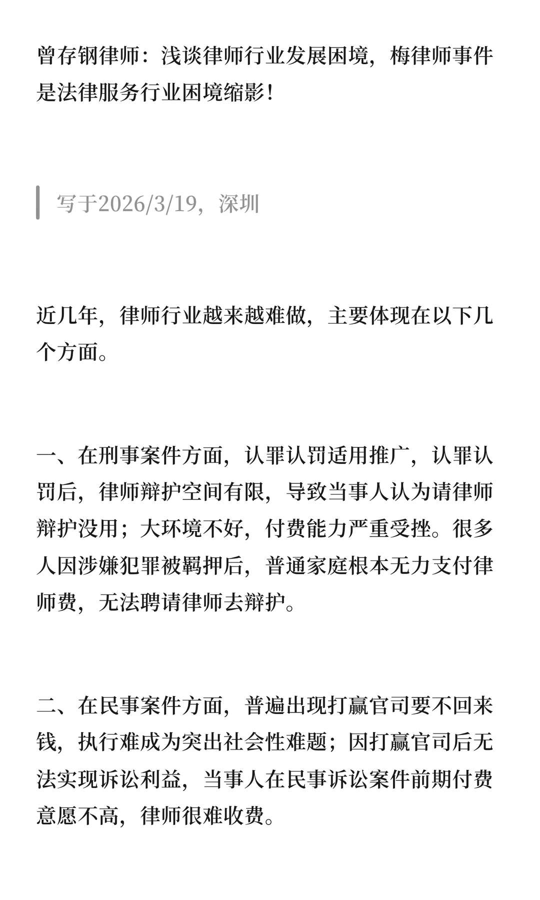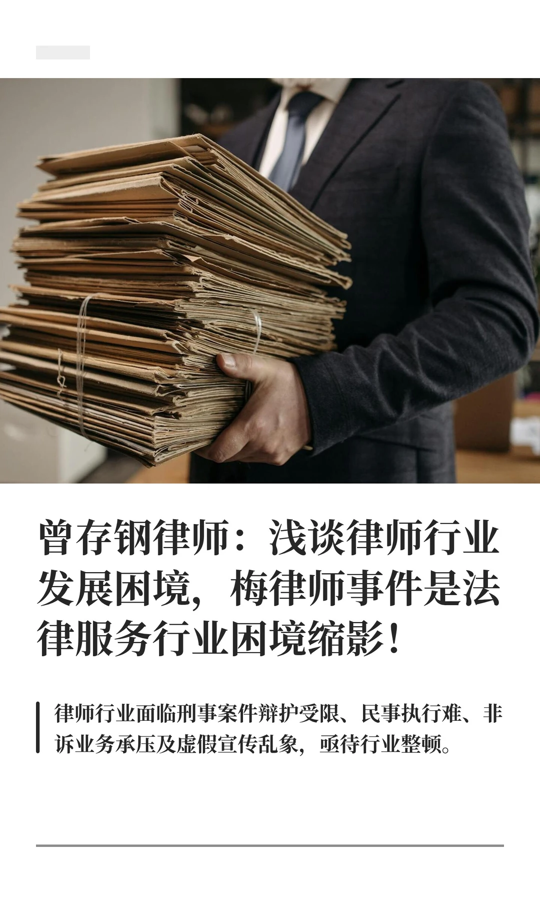 曾存钢律师:浅谈律师行业发展困境,梅律师事件是法律服务行业困境缩影!