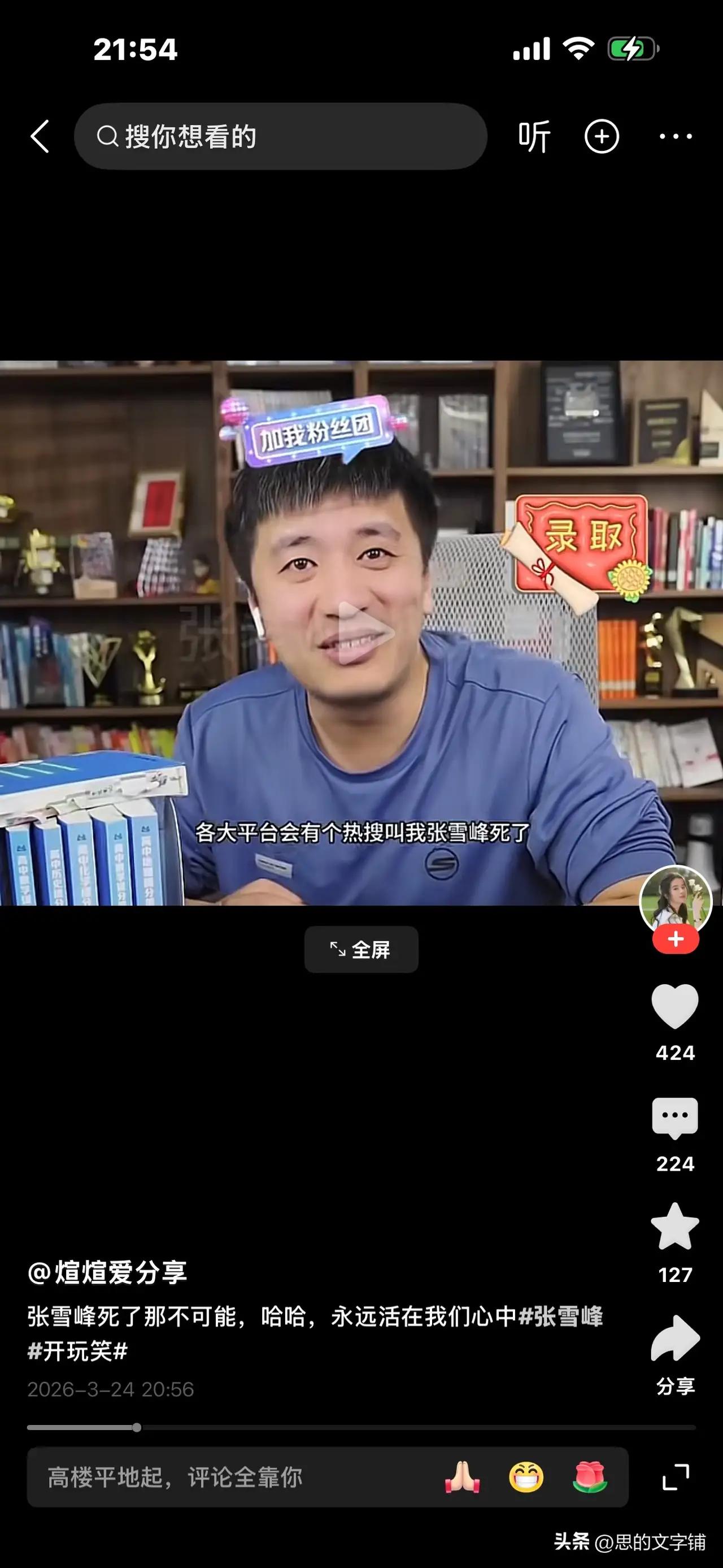 工作室发出讣告,张雪峰心源性猝死抢救无效去世;年仅41岁 工作室多个平台头像变灰,多个工作直播相继暂停 看到这个消息我真的泪目了,太可惜了。敢说真话,无所畏惧的性格,张老师一路走好[祈祷][祈祷][祈祷]