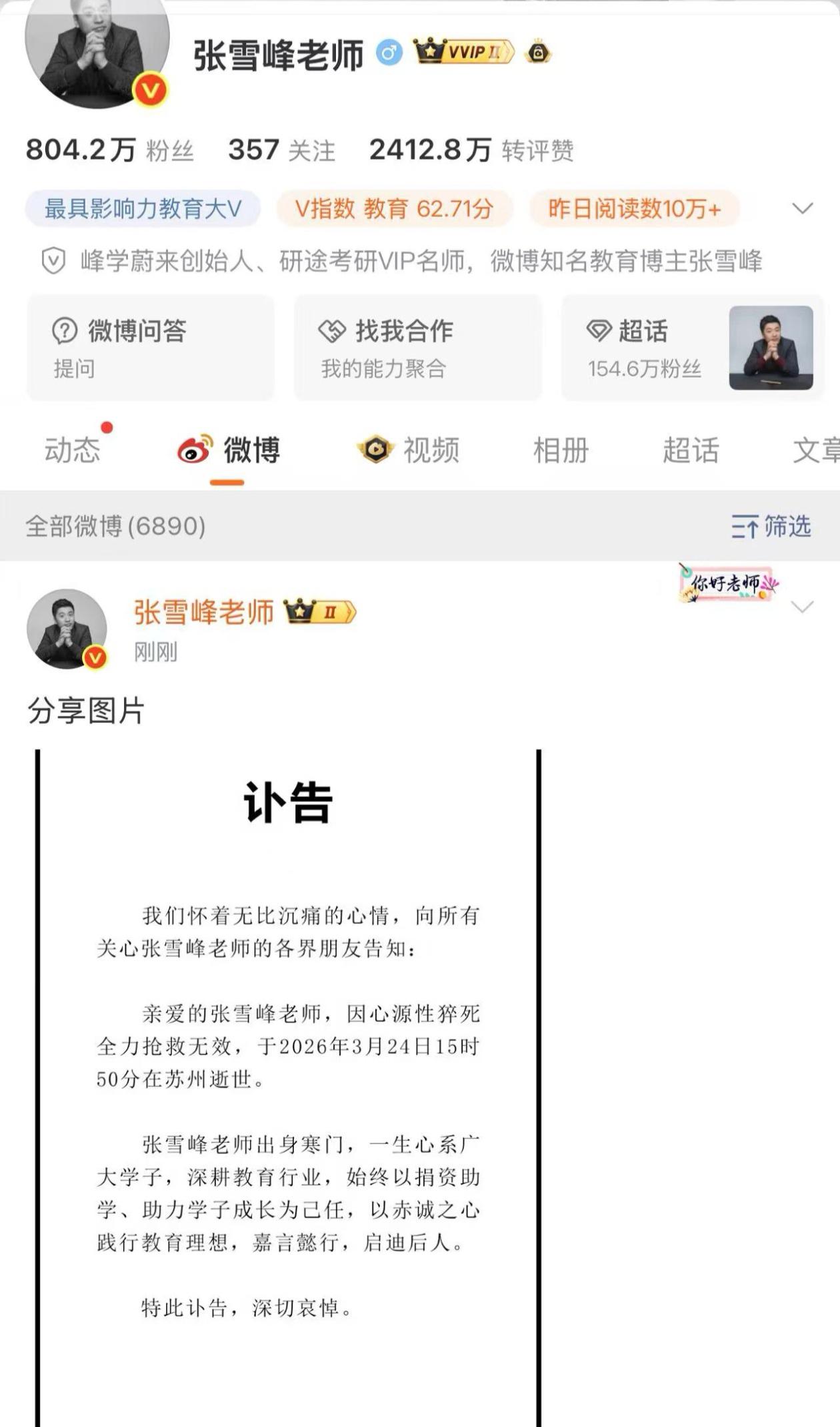 我真的不愿意相信这是真的,他太年轻了,才41岁啊! 一个为教育付出真心的人,才会得到大家的认可,也正是负责的心态,才让他加班加点。 凭本事赚钱并不可耻,但透支健康赚钱,确实得不偿失! 此刻,他的老婆女儿该多心痛的,只能在此对他家人说一声,请节哀!